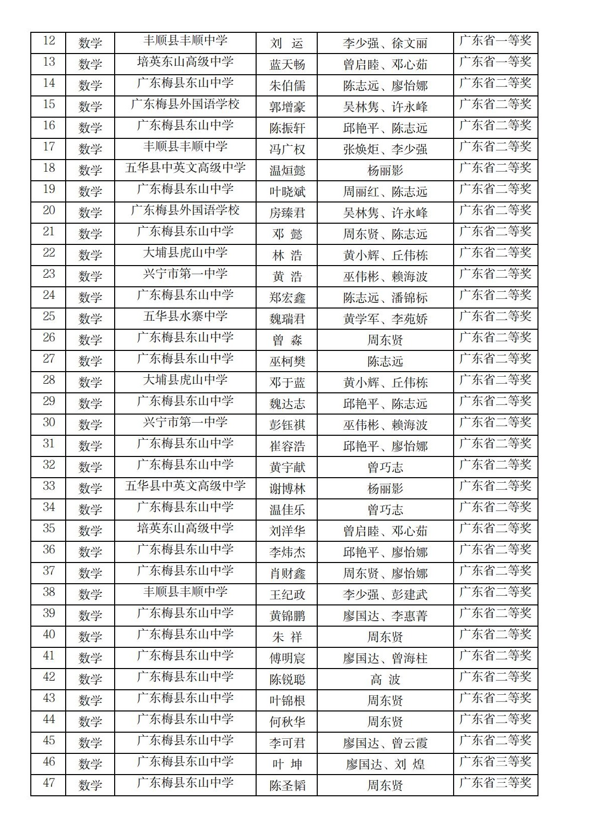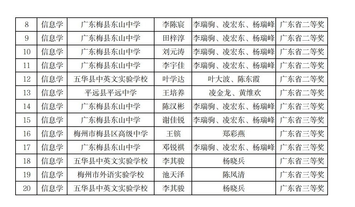 “竞赛佳绩的取得是梅州市致力于培养高素质创新型人才的阶段性成果,充分展现了梅州市人才培养的成效。”梅州市教育局相关负责人介绍,近年来,梅州市各县(市、区)教育局和学校,不断完善、优化多元化育人机制,激励广大学生学习榜样追求卓越,激活学科兴趣,夯实学科基础,提升思维能力。