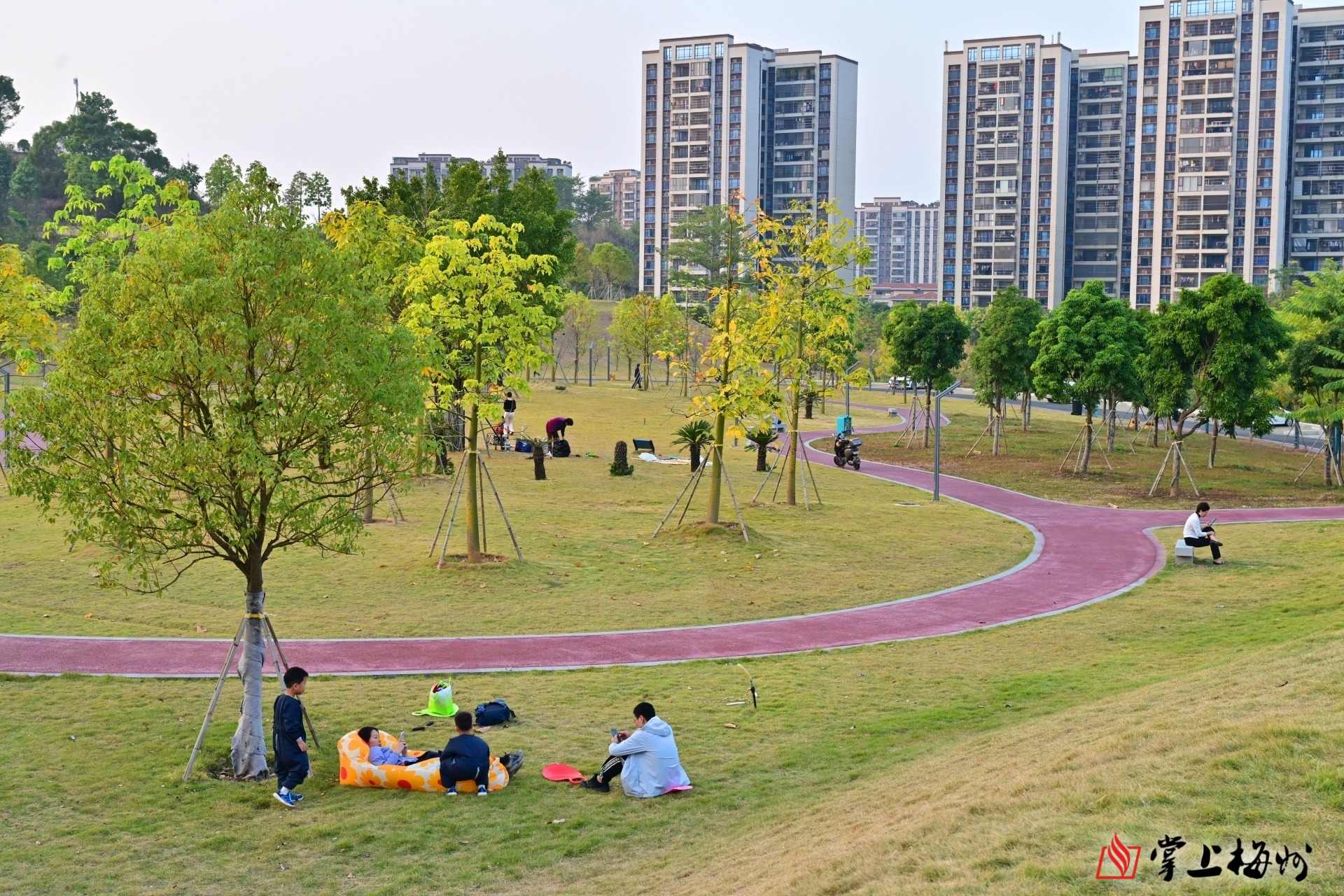 ▲梅江区秀兰大桥侧的小山坡,于去年动工逐步完善,如今成为不少市民休闲的好去处。