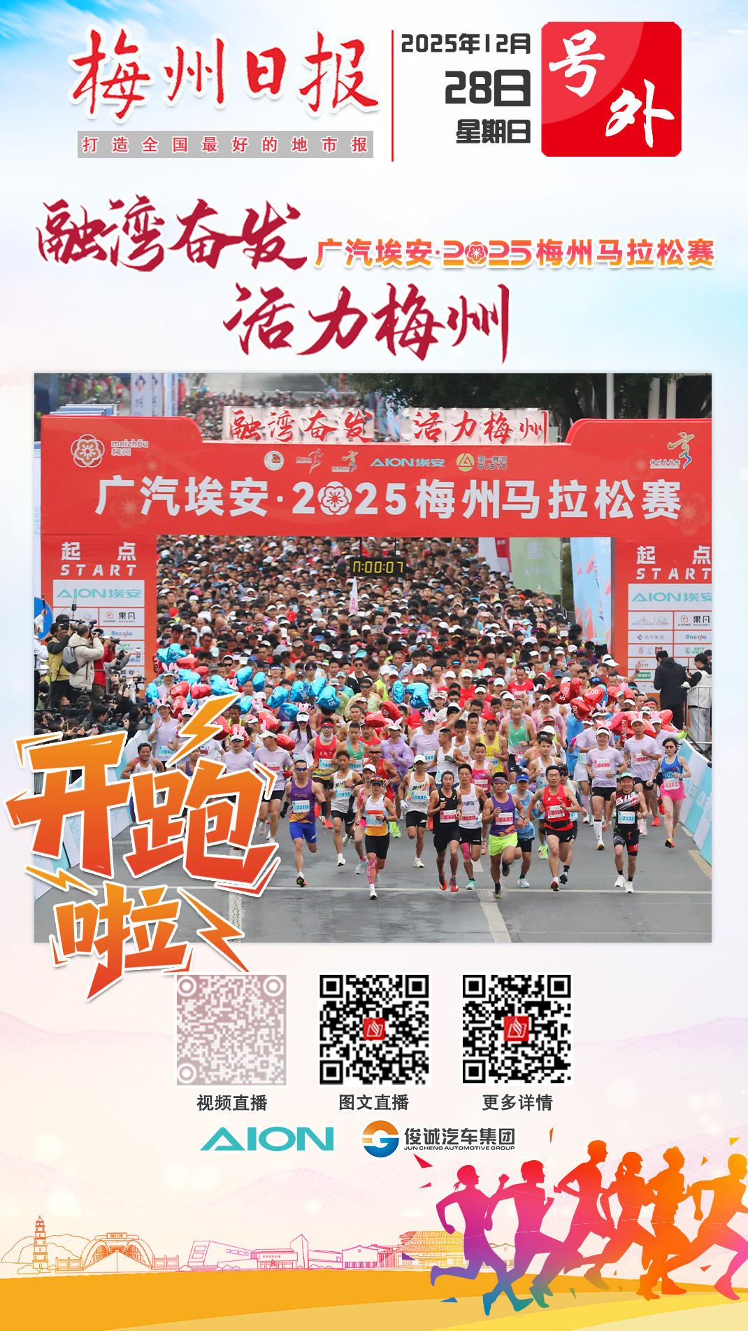 掌上梅州讯 12月28日早上7时30分,以“融湾奋发 活力梅州”为主题的广汽埃安·2025梅州马拉松赛在梅县区人民广场鸣枪开跑。1万名选手齐聚梅州,体验“跑场马拉松,游遍嘉应城,尝尽客家味”的难忘之旅。