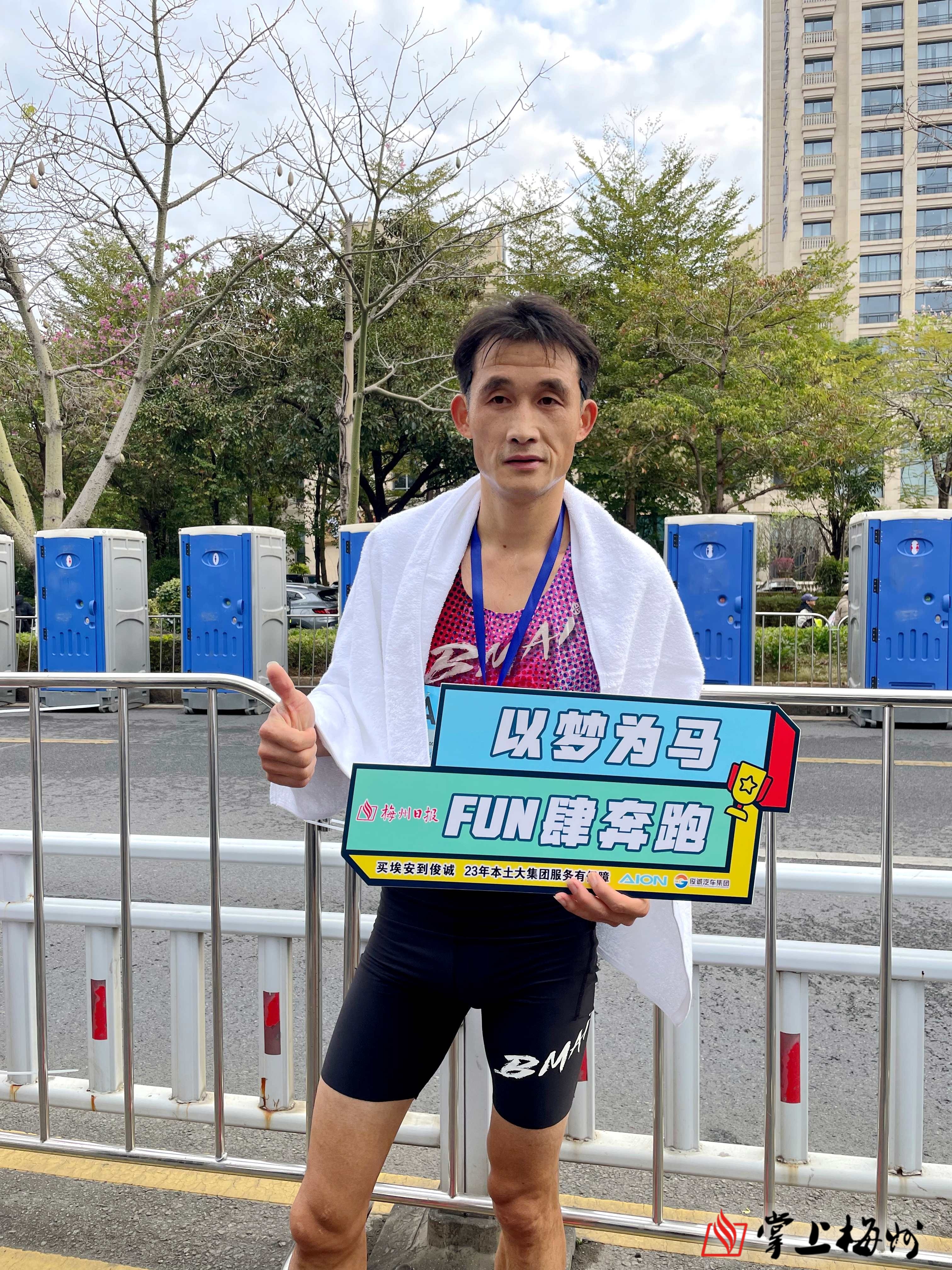 掌上梅州讯 来自湖南长沙的选手谭奇获得本次2025梅州马拉松赛半马男子组季军,他是首次参加梅州马拉松,对梅州赛道平坦、有利于创造个人最佳成绩(PB)的条件表示满意。“今天的天气温度非常给力,最后还有约3公里的时候,周边的观众加油声很热烈,给了我很大的鼓舞。”谭奇表示,自己和前两名选手一直保持在第一梯队,竞争比较激烈,最后约500米才决出胜负。“虽然我今天没跑出今年最好的PB,但是也是接近于我的PB了,希望明年有机会再来梅州参赛。”谭奇在赛后补充道,这次参赛让他对梅州这座城市的氛围和赛事组织留下了深刻印象,特别是沿途经过一些地标时,能感受到这座城市深厚的底蕴。