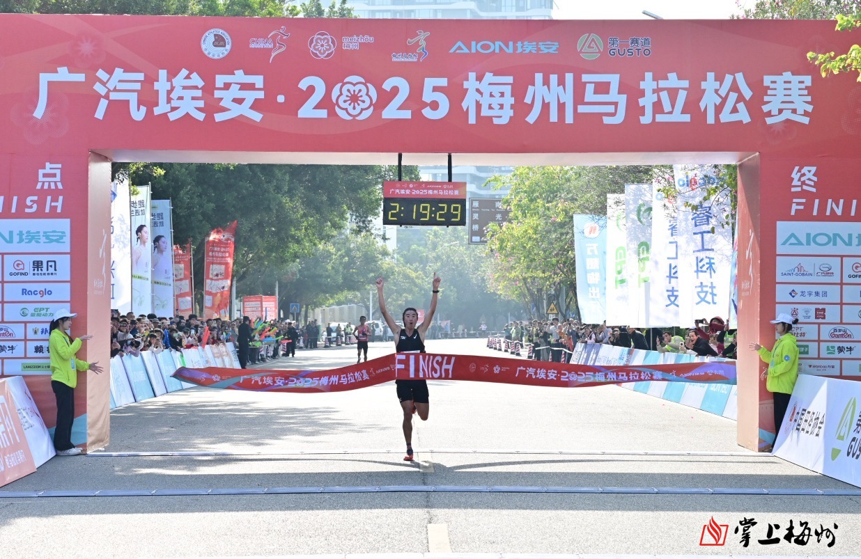 掌上梅州讯 在马拉松项目男子组比赛中,来自重庆的周友发技高一筹,一举夺得冠军,并以枪声成绩02:19:29打破梅州马拉松赛的赛会纪录。