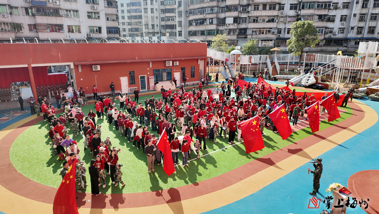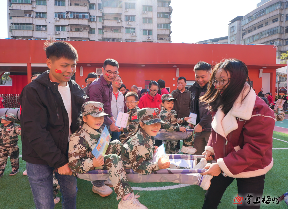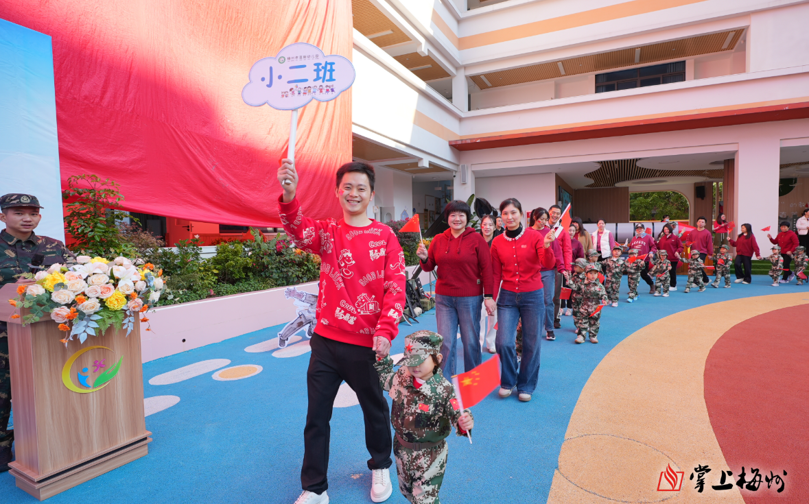 掌上梅州讯 12月30日上午,梅州市莲新幼儿园内彩旗飘扬、欢声阵阵,一场以“客韵红魂・中国力量”为主题的首届亲子运动会火热启幕。活动将梅州本土红色资源、客家文化传统与国防教育深度融合,通过一系列趣味盎然又富有教育意义的亲子互动项目,为孩子们和家长们打造了一堂沉浸式的爱国主义与集体主义实践课。