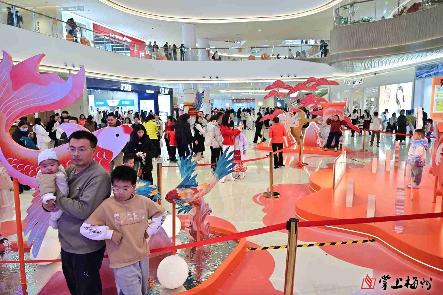 梅州天虹购物中心则以“国潮+亲子”吸睛。山海经美陈展前,年轻消费者纷纷驻足拍照,非遗亲子手工课堂上,家长与孩子共同制作传统手工艺品。“我们购物中心假期客流量超30万人次,销售额突破800万元,较平日周末增长40%。”该购物中心助理总经理周莉说,商场推出的满额抽奖活动最受市民欢迎,70寸高清电视等奖品点燃了大家的消费热情,超市生鲜、熟食和智能家居品类销量涨幅最大,为保障节日供应,商场备货量提升至平日的4至5倍,通过总部配送与本地采购结合,稳住民生商品供应。