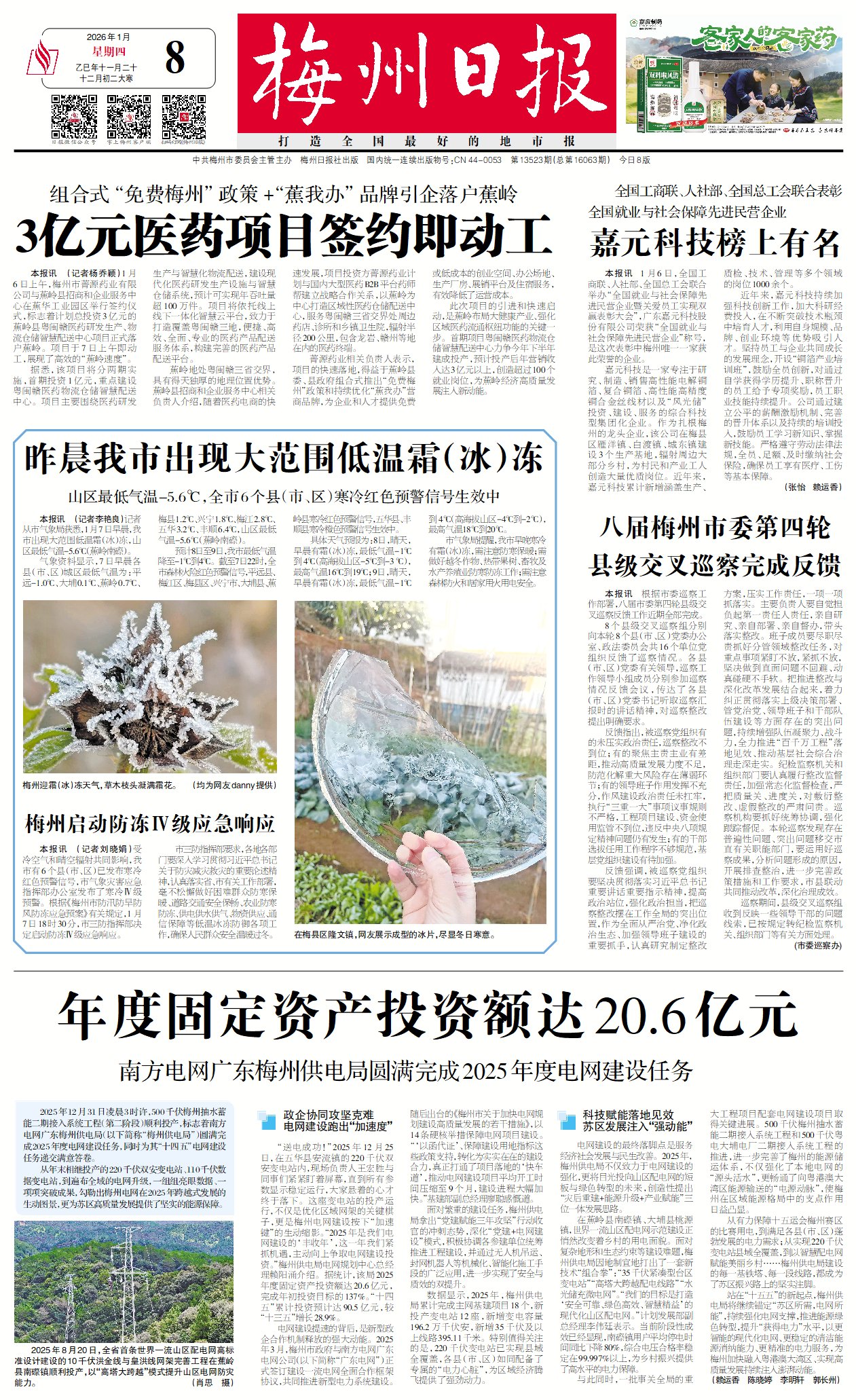 “送电成功!”2025年12月25日,在五华县安流镇的220千伏双安变电站内,现场负责人王宏胜与同事们紧紧盯着屏幕,直到所有参数显示稳定运行,大家悬着的心才终于落下。这座变电站的投产运行,不仅是优化区域网架的关键棋子,更是梅州电网建设按下“加速键”的生动缩影。“2025年是我们电网建设的‘丰收年’,这一年我们紧抓机遇,主动向上争取电网建设投资。”梅州供电局电网规划中心总经理赖阳涌介绍。据统计,该局2025年度固定资产投资额达20.6亿元,完成年初投资目标的137%。“十四五”累计投资预计达90.5亿元,较“十三五”增长28.9%。