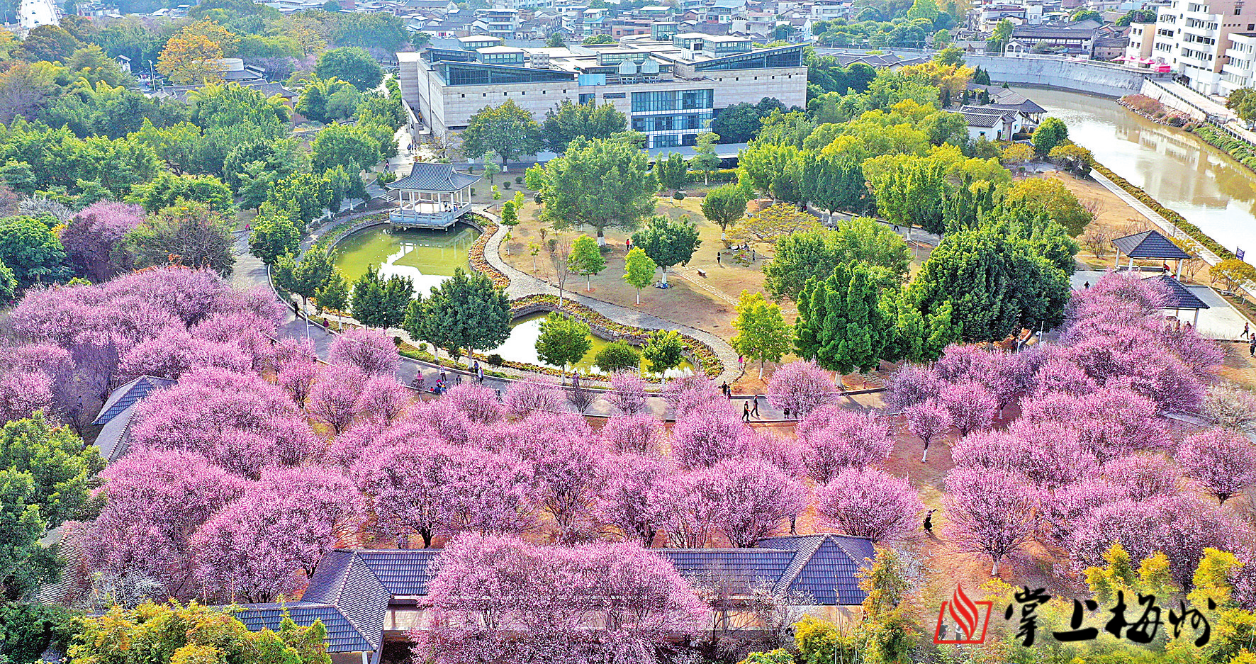 掌上梅州讯 根据梅州市气象局生态与农业气象中心和梅州市农林科学院花卉研究所的梅花开放需冷量预报模型及气象探测数据综合分析,2026年客家公园“宫粉”梅花花期比去年早,预计1月12日至1月下旬前期,客家公园梅花进入最佳观赏期。