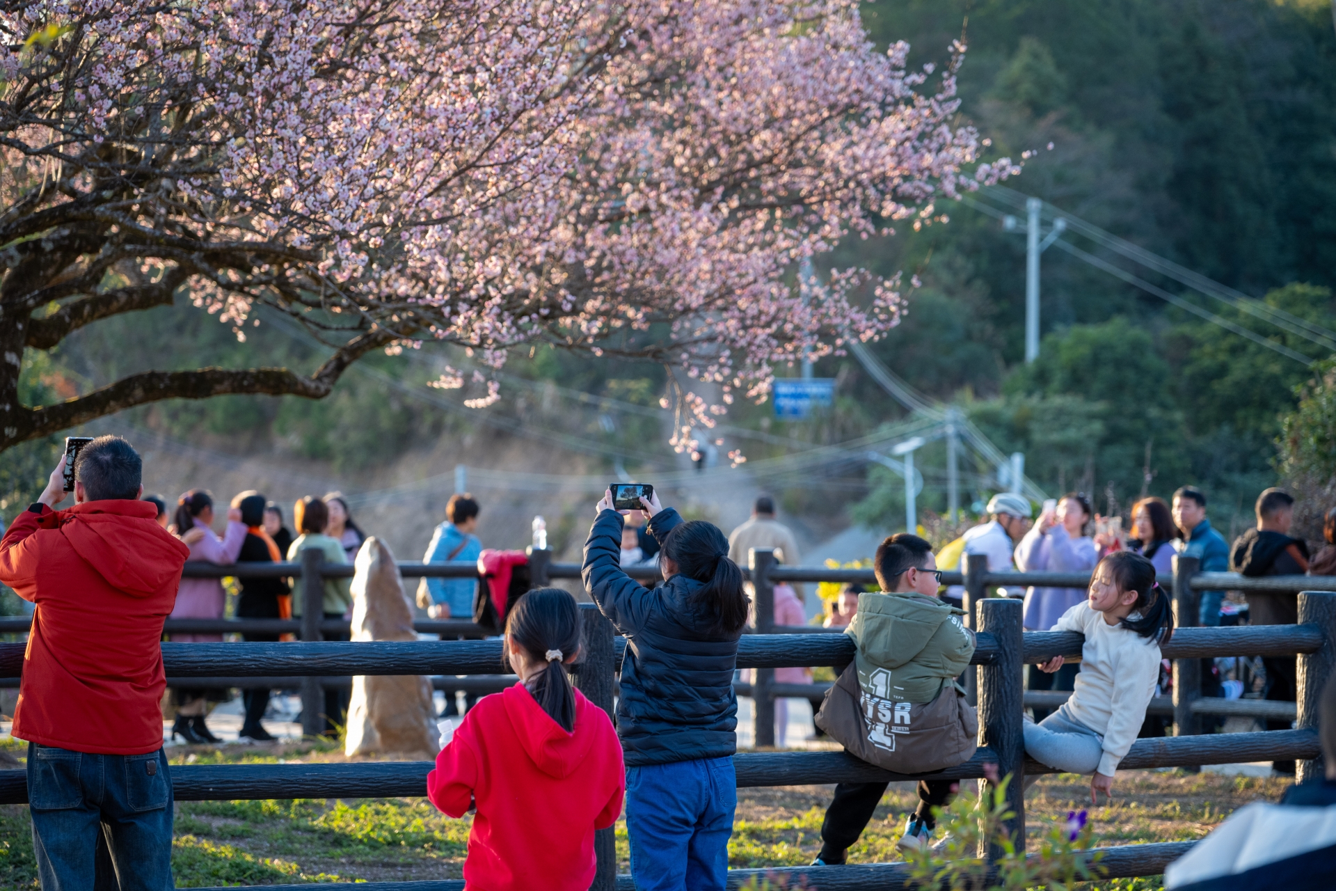 市民从四面八方驱车前来,于古梅绽放之时,闻香休憩共享时光。