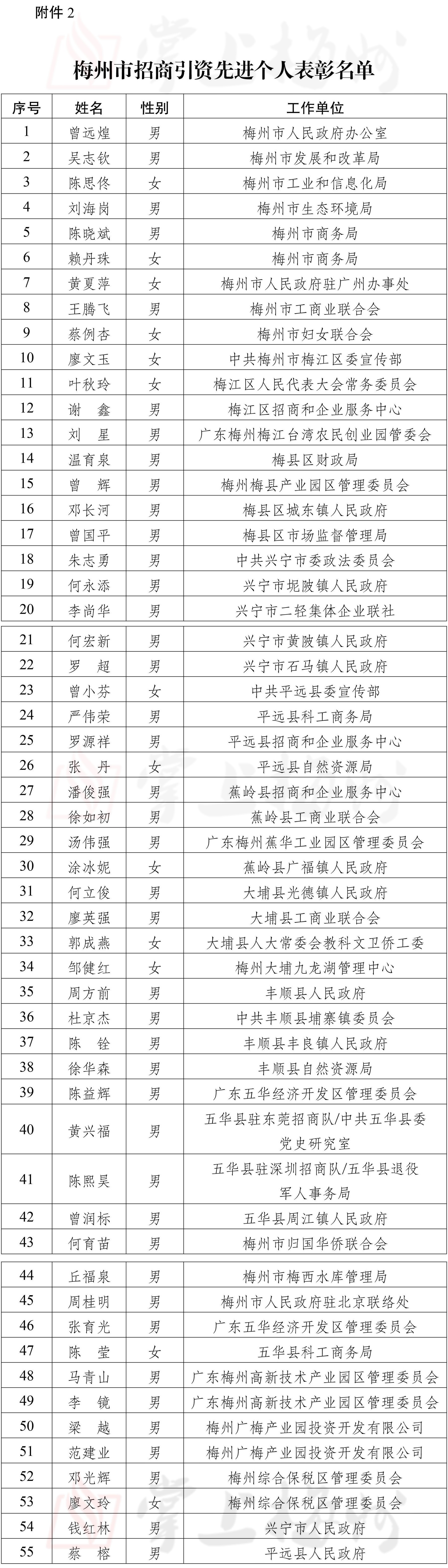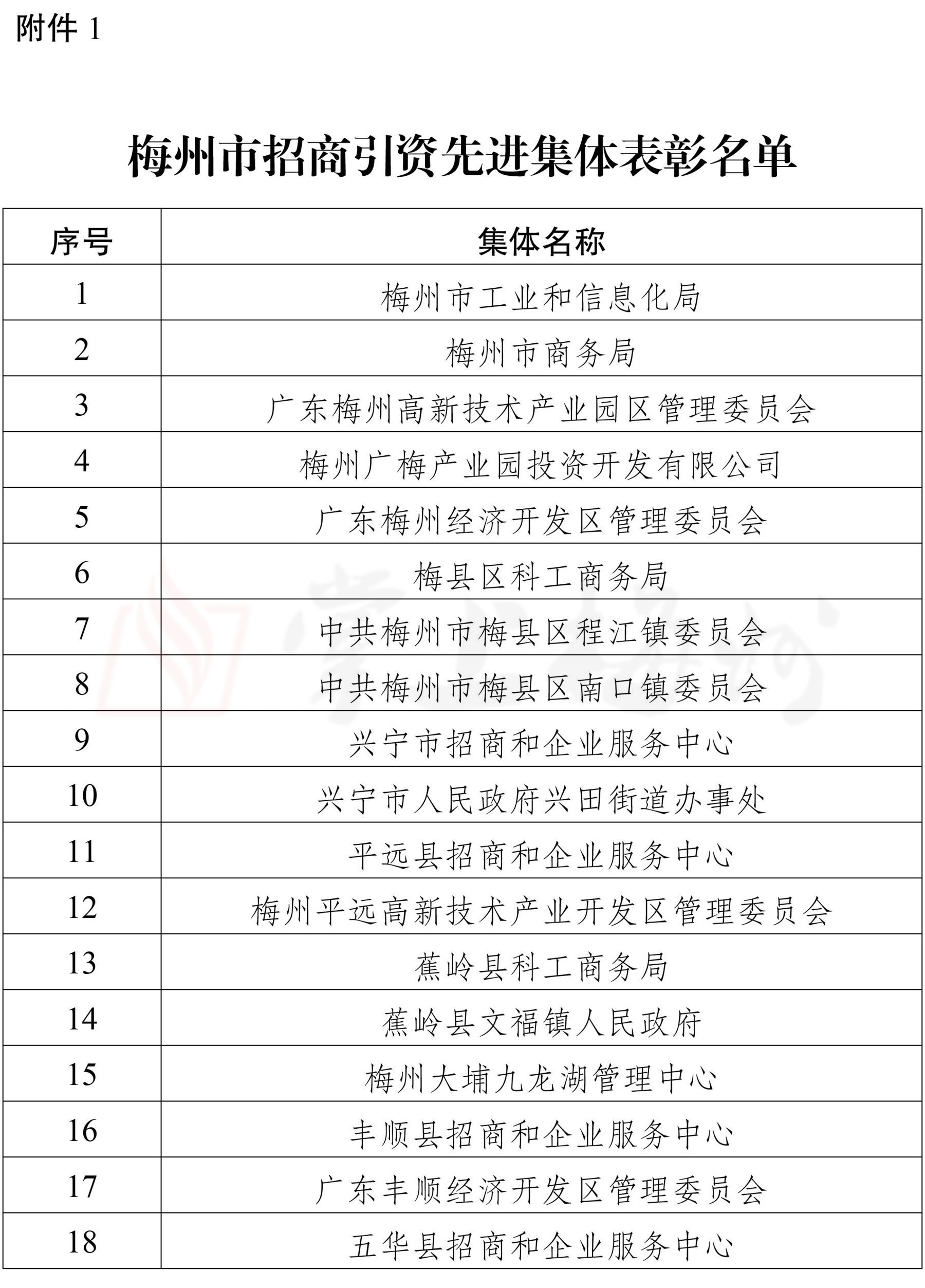 《决定》显示,此次授予梅州市工业和信息化局等18个集体“梅州市招商引资先进集体”称号,授予曾远煌等55位同志“梅州市招商引资先进个人”称号。