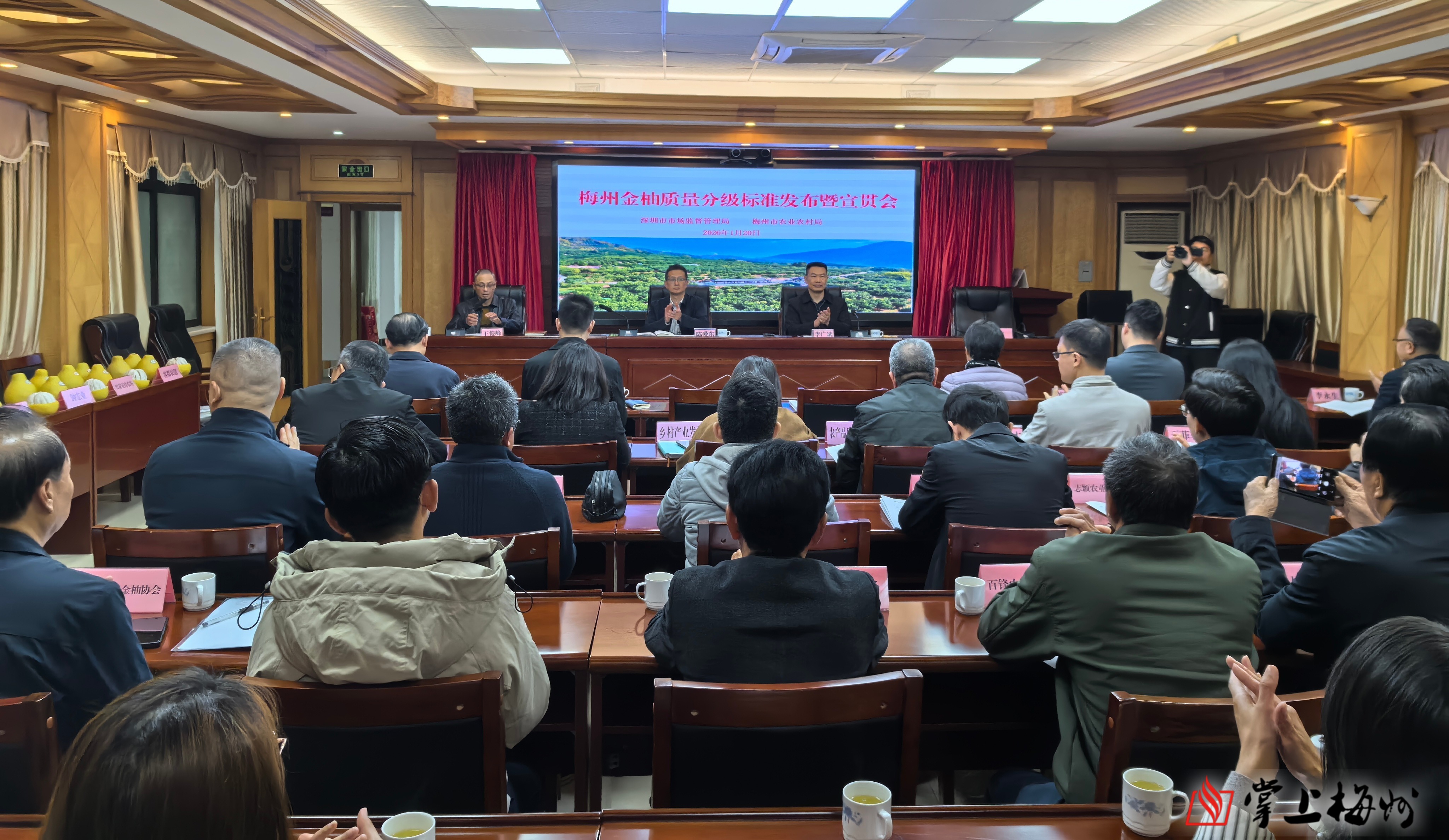 掌上梅州讯 1月20日上午,梅州金柚质量分级标准发布暨宣贯会在梅州市农业农村局召开。会议正式发布《质量分级农产品生产技术规程金柚》《水果分级标准金柚》两项团体标准及《梅州金柚质量分级评价管理办法》,并举行质量等级标志授权使用仪式,标志着梅州金柚产业迈入“标准引领、评价规范、品牌赋能”高质量发展新的阶段。
