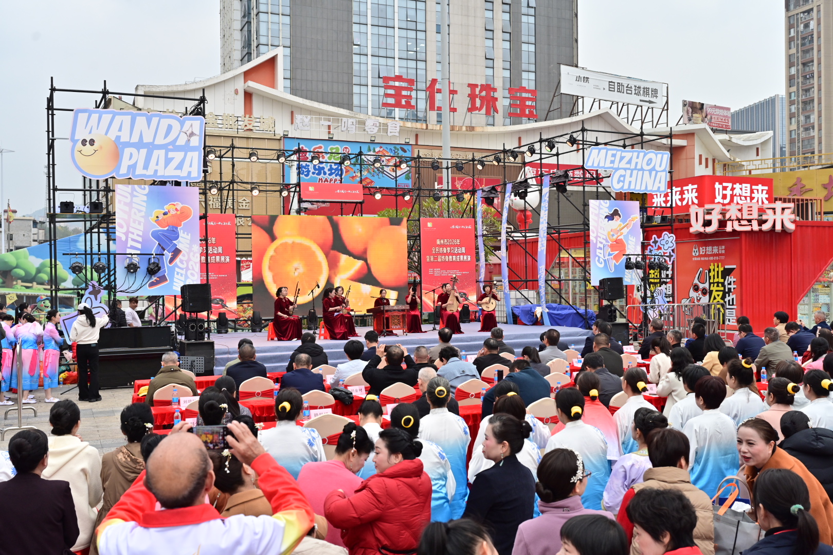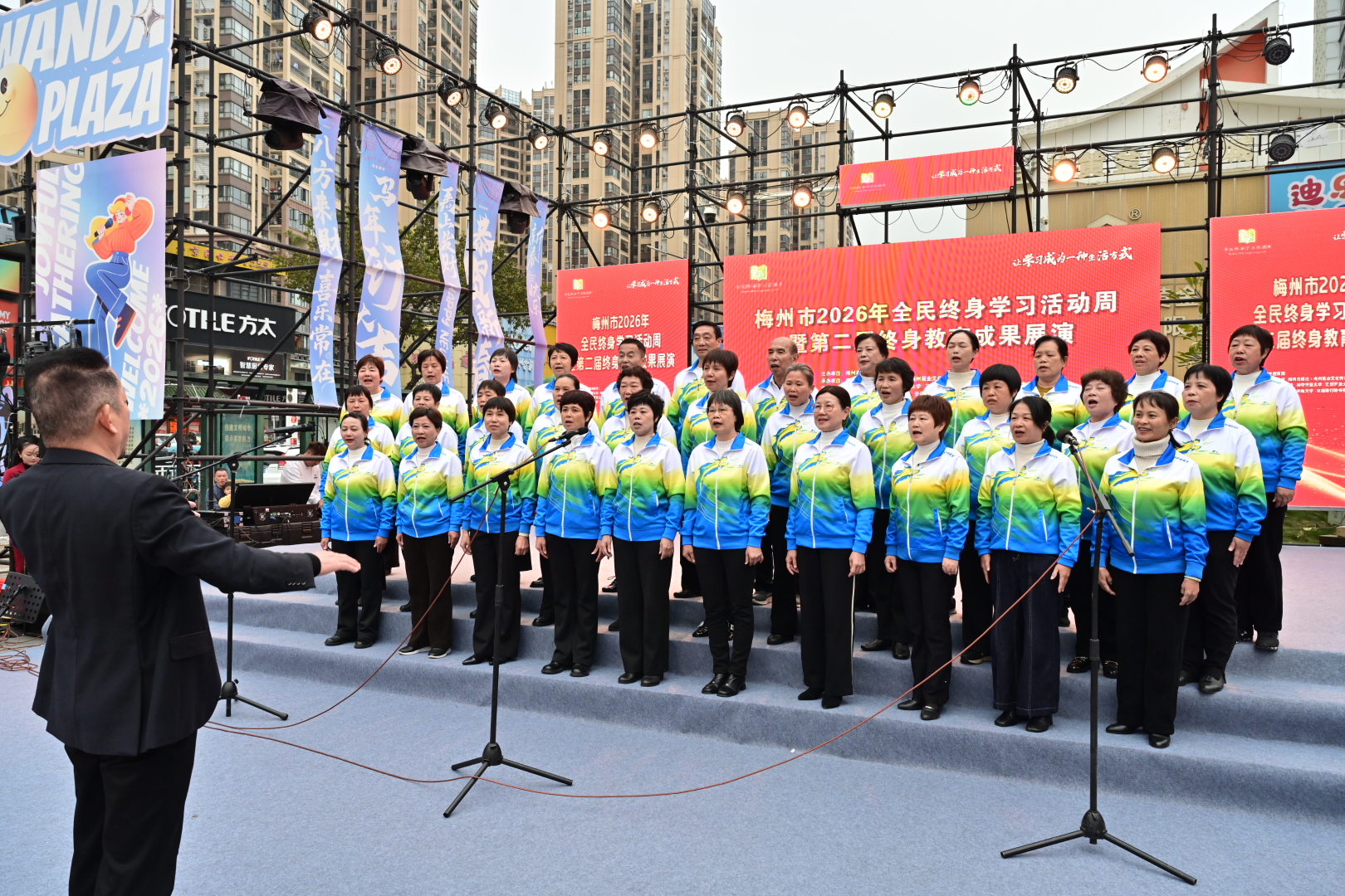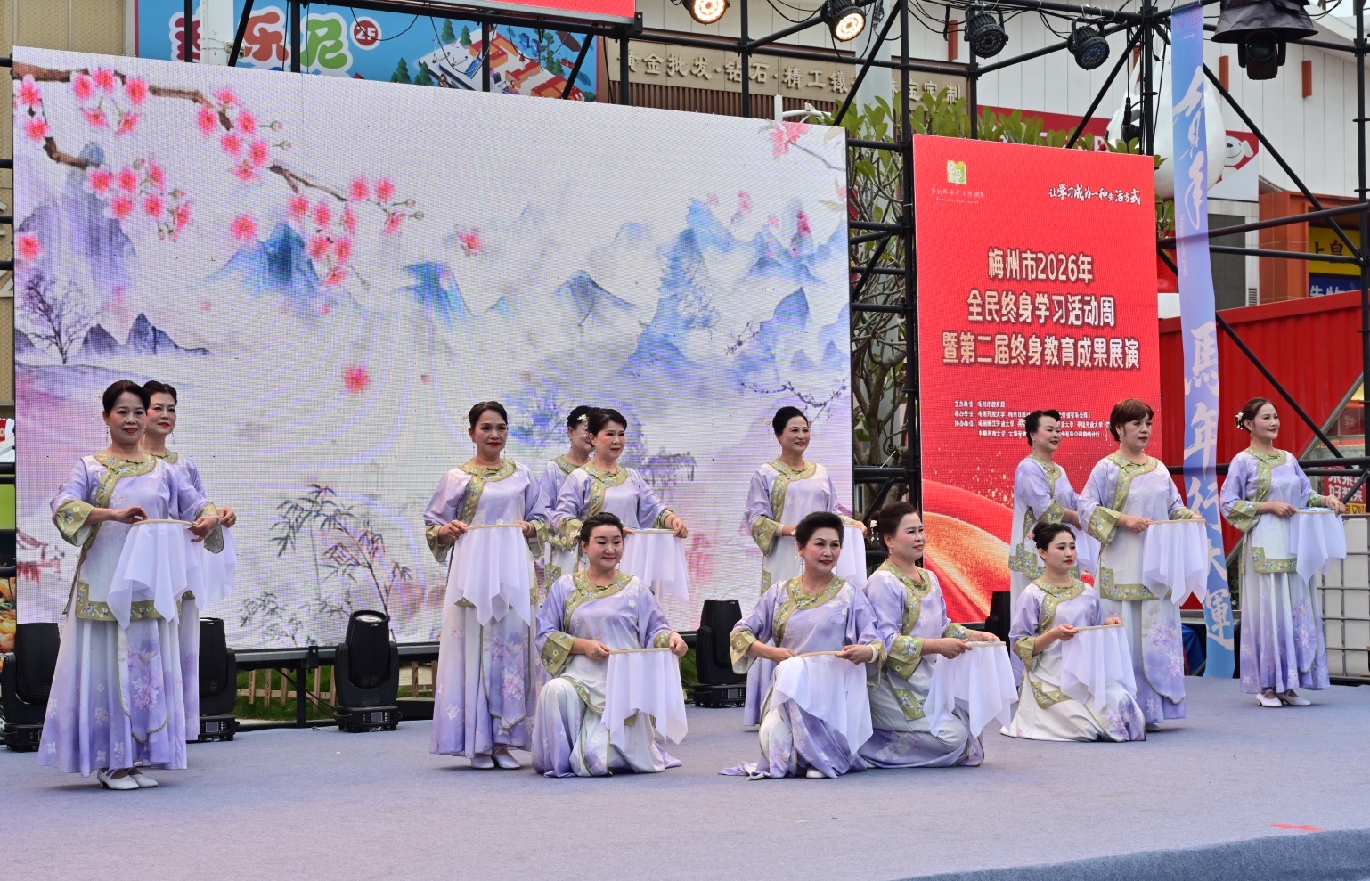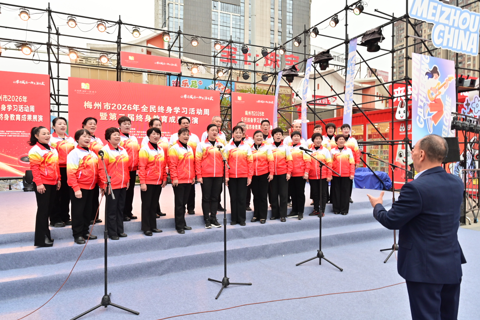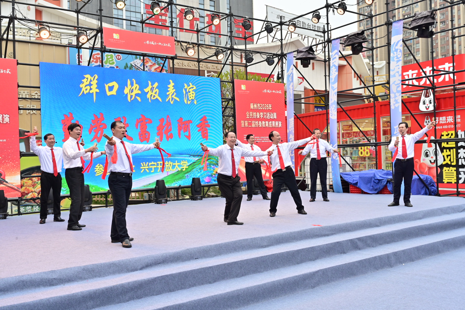 掌上梅州讯 1月20日下午,以“让学习成为一种生活方式”为主题的梅州市2026年全民终身学习活动周暨第二届终身教育成果展演活动在梅江区万达广场举行。市教育局党组成员、副局长钟文,梅州开放大学党总支书记、校长罗金良,梅州日报社党委副书记、总经理丘锦乾,梅州市委社会工作部副部长、三级调研员曾宪鑫,梅州市妇联党组成员、副主席陈春妮等领导嘉宾出席开幕式。