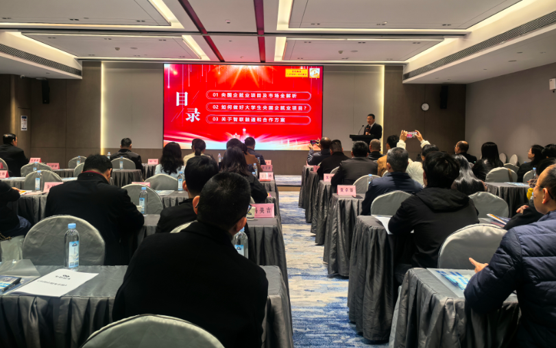 活动现场,广东智联融通网络有限公司总经理陈文详细讲解“共建大学生央国企求职就业一站式服务平台”项目,围绕“央国企就业项目及市场全解析”“如何做好大学生央国企就业项目”等主题从项目优势、服务模式、合作愿景等方面介绍该项目的服务体系与市场价值。现场还举行了合作政策说明与互动答疑环节,详细介绍合作模式、支持政策、签约流程等内容。