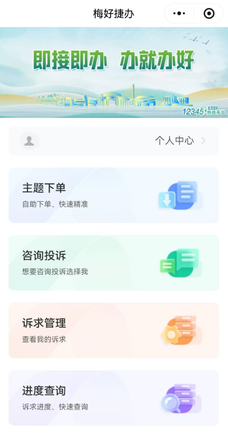 为进一步深化12345热线平台“即接即办”改革工作,完善快速响应、高效办理、及时反馈、主动治理的“即接即办”为民服务机制,梅州市政务服务和数据管理局即日起正式推出梅州市12345政务服务便民热线专属小程序——“梅好捷办”,实现群众和企业诉求“码上提交、马上响应、马上办理”!