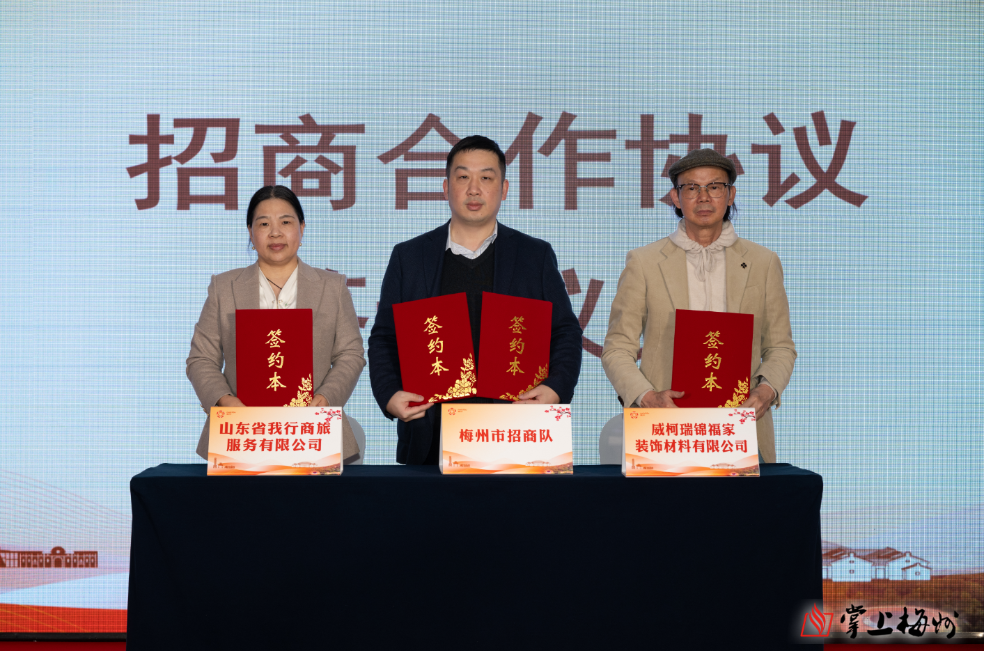 活动现场以视频方式展示了梅州优质商品房项目、招商引资政策、住房公积金及金融支持措施,市文化广电旅游局、市驻苏州招商队分别与有关商会、企业签署合作协议;梅州市房企代表与意向购房客户签订购房意向书,实现“文旅+招商+置业”多维联动,成果丰硕。