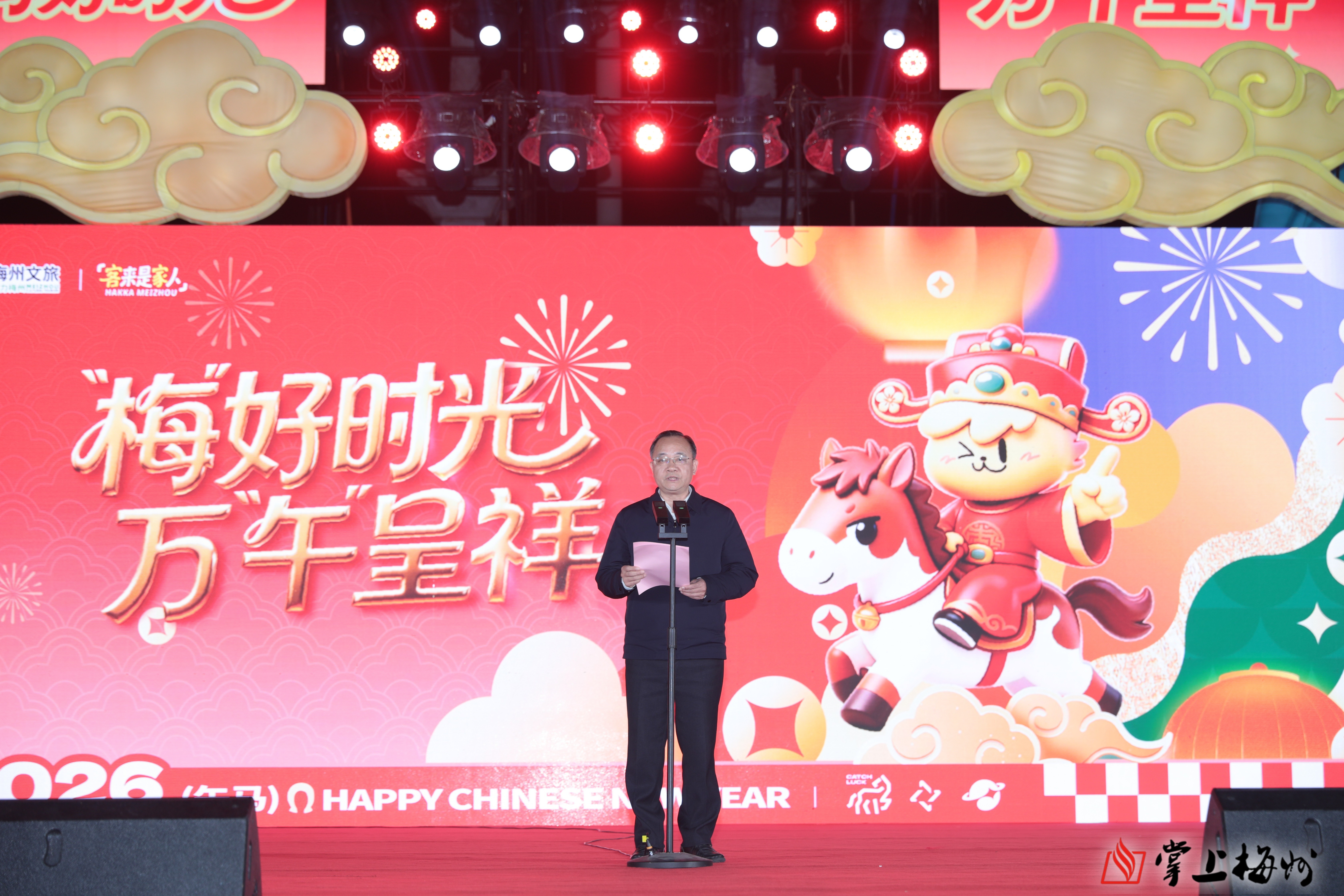 掌上梅州讯 2月11日晚,“梅”好时光 万“午”呈祥——“请到梅州过大年”系列活动启动仪式在梅城院士广场举行,邀请全国乃至全世界人民到梅州过大年,探寻千年客韵、畅玩客家山水、体验地道客家风情,共度一个喜庆祥和、客韵十足的“梅州年”。市委书记马正勇,市委副书记、市长王晖,市政协党组书记、主席杨朝晖出席活动。