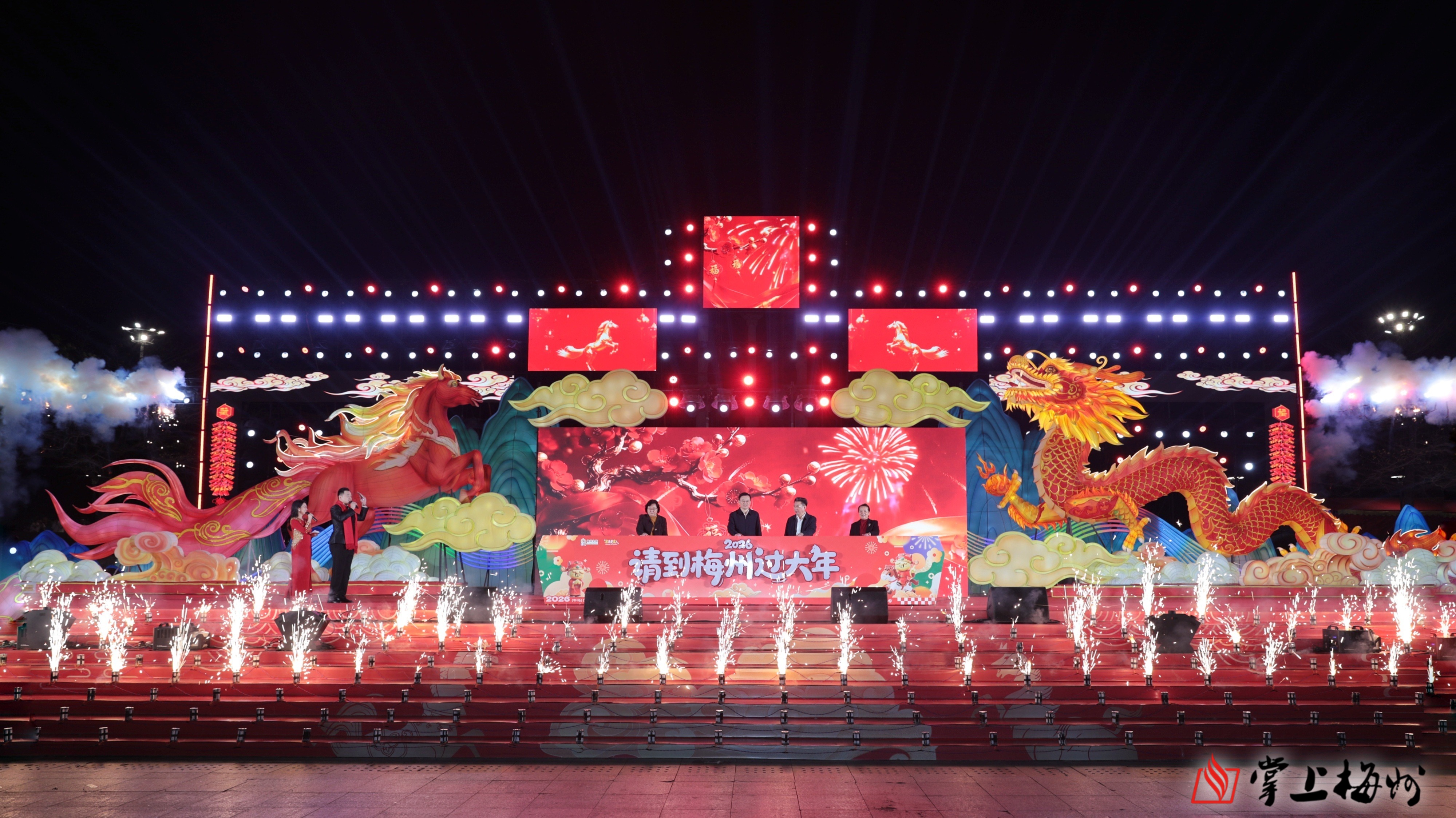 “梅”好时光 万“午”呈祥——“请到梅州过大年”系列活动由梅州市委、市政府指导,梅州市文化广电旅游局、广州对口帮扶协作梅州指挥部、梅江区人民政府、梅县区人民政府、丰顺县人民政府共同主办,兴宁市人民政府、平远县人民政府、蕉岭县人民政府、大埔县人民政府、五华县人民政府、梅州市商务局、梅州市农业农村局、广东客都文旅有限公司、广东汉剧传承研究院、梅州市广播电视台共同协办,梅州市金航科技有限公司、广东华鸿生物健康有限公司、梅州市星空彩虹文化科技有限公司等支持。