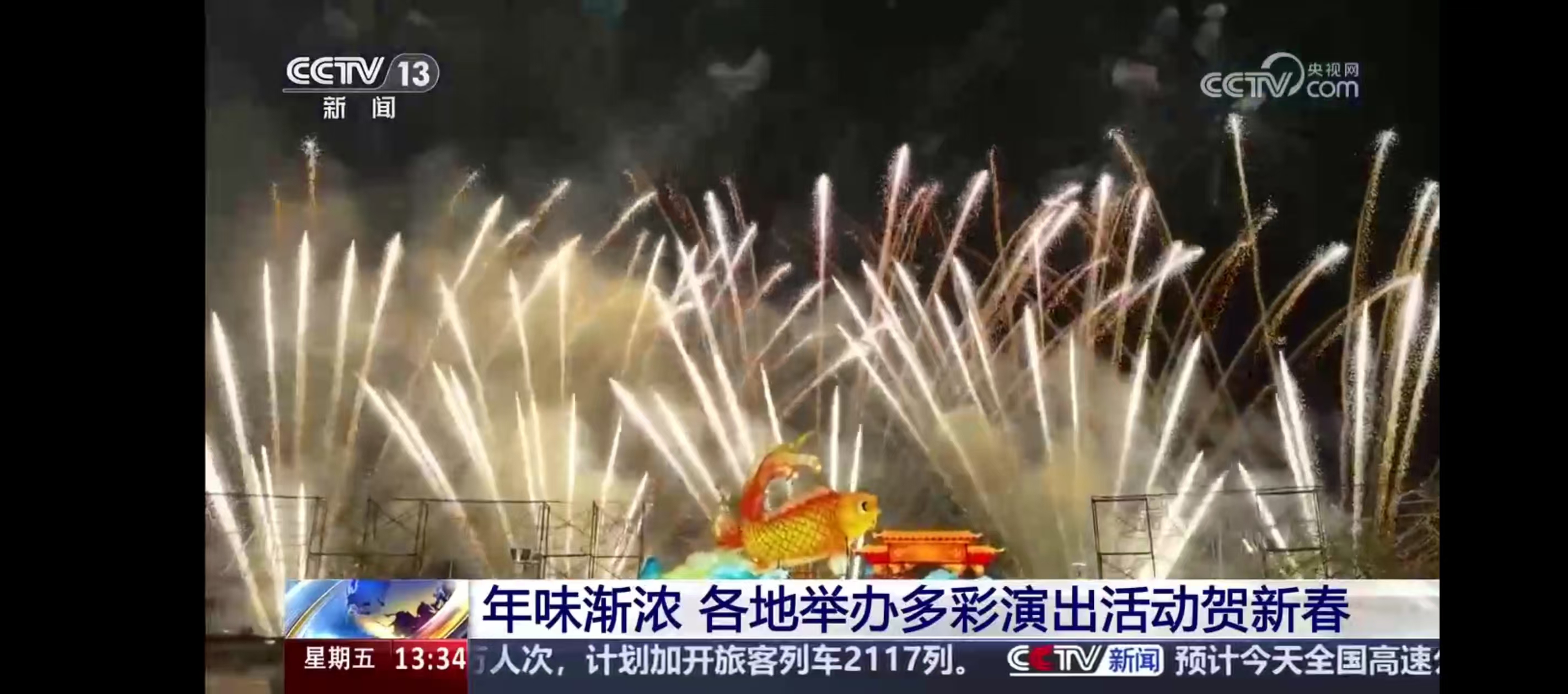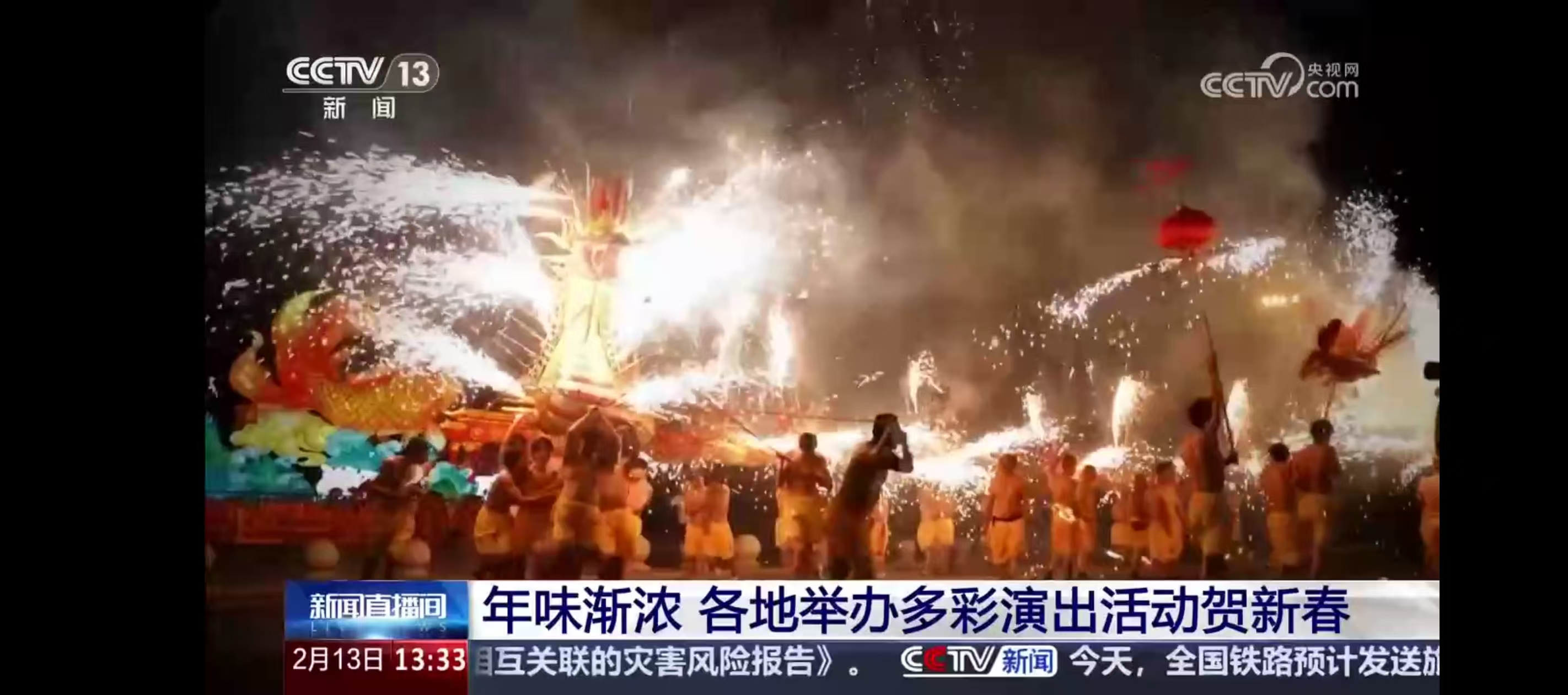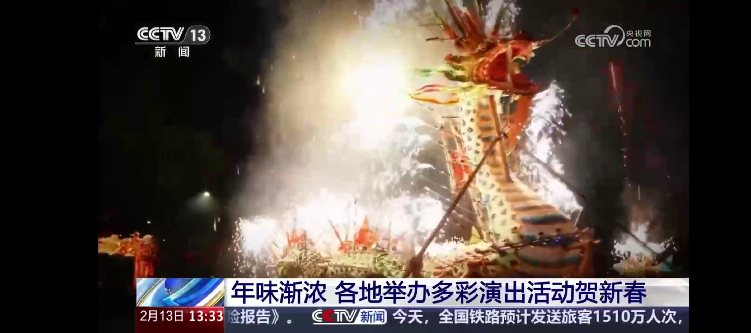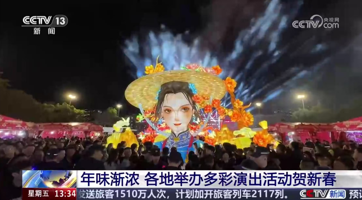在央视《年味渐浓 各地举办多彩演出活动贺新春》为题的报道中,梅州的国家级非遗烧火龙、璀璨烟花秀、新春灯会、客家圩市轮番上演,精彩纷呈,热闹非凡。
