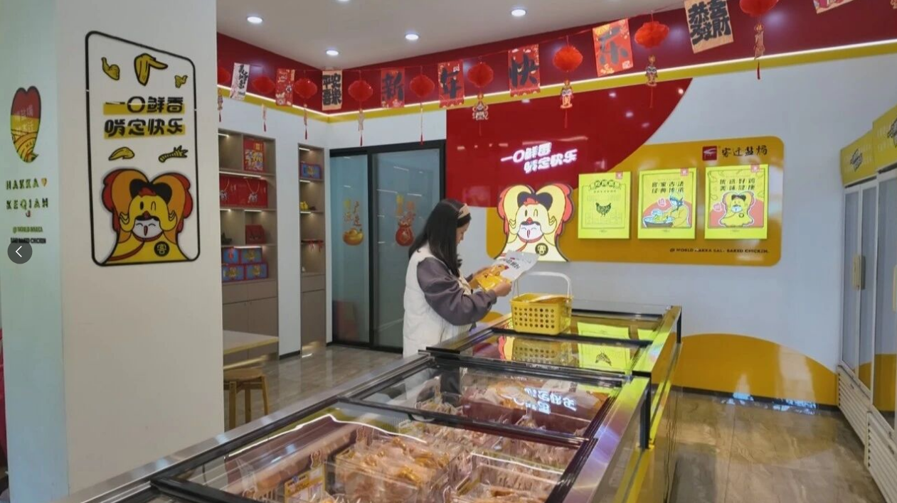 记者走访城区多家客家特产店看到,不少客家特产店的销量都比较可观。在品类丰富的客家美食中,盐焗食品堪称典型代表,它凭借独特风味,赢得广大消费者青睐。假期期间,梅州市客迁食品有限公司门店内,盐焗鸡、盐焗鸭的小包装、锁鲜装及整只盐焗鸡等产品成为热销爆款,为满足持续旺盛的消费需求,门店每日多轮补货,店员们有条不紊地保障着商品供应。