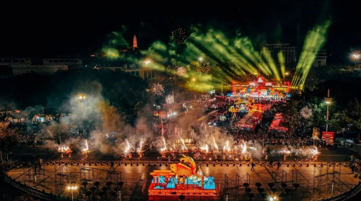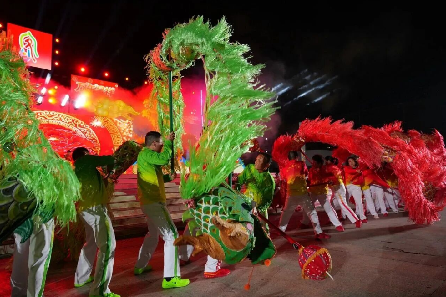 2月11日晚,"梅"好时光 万”午”呈祥——请到梅州过大年系列活动在院士广场正式启动。在这场从腊月持续至元宵的客家新春盛宴中,非遗元素贯穿始终。启动仪式当晚、大年初一晚上,火龙在院士广场主会场腾空而起,表演者赤膊上阵,高擎龙头,烟花怒放、火箭四射,承载着百姓祈福纳祥的美好祝愿。舞台上,客家山歌、广东汉剧、花环龙等国家、省级非遗轮番上演,锣鼓铿锵、唱腔婉转,引得市民游客并肩观赏、齐声喝彩。