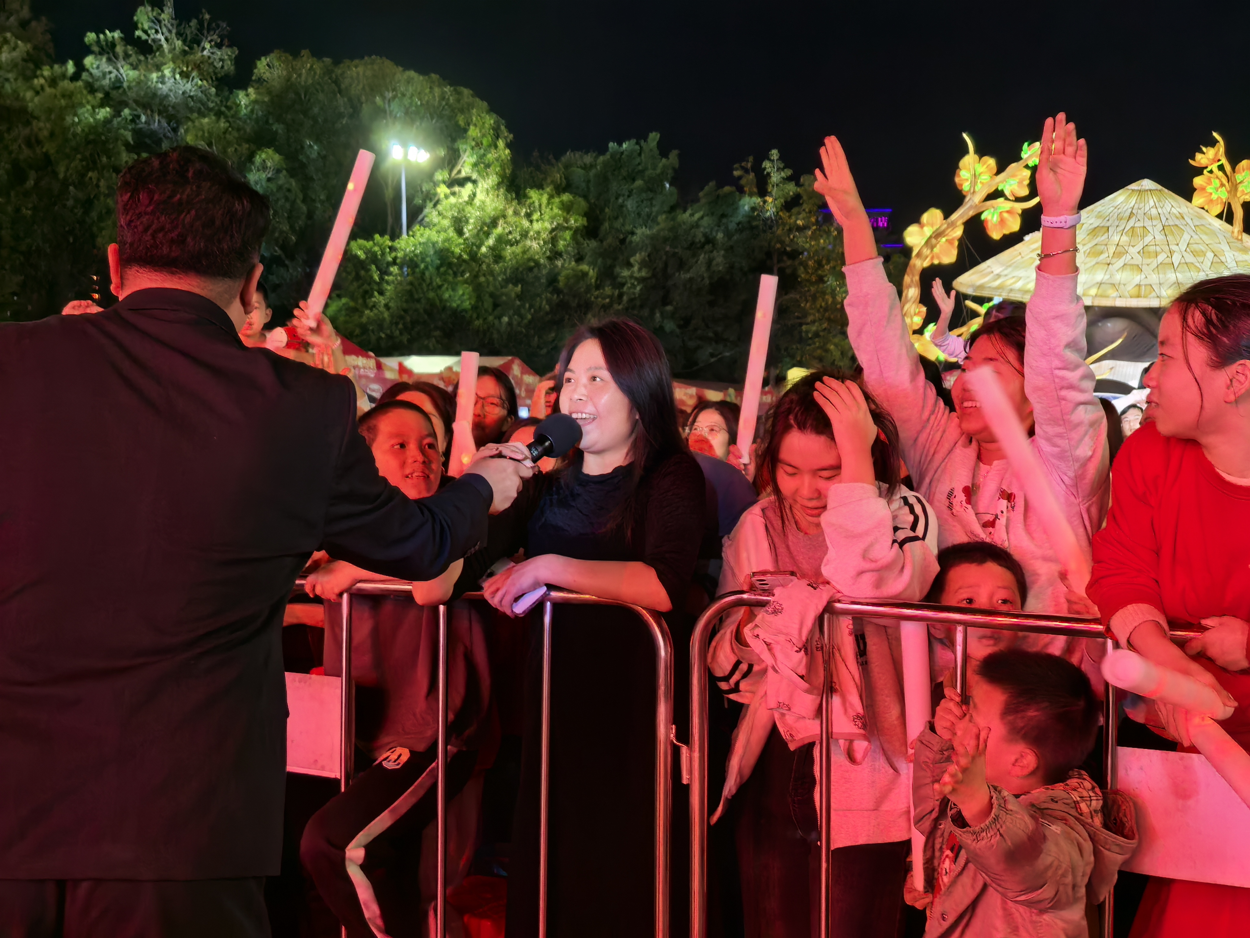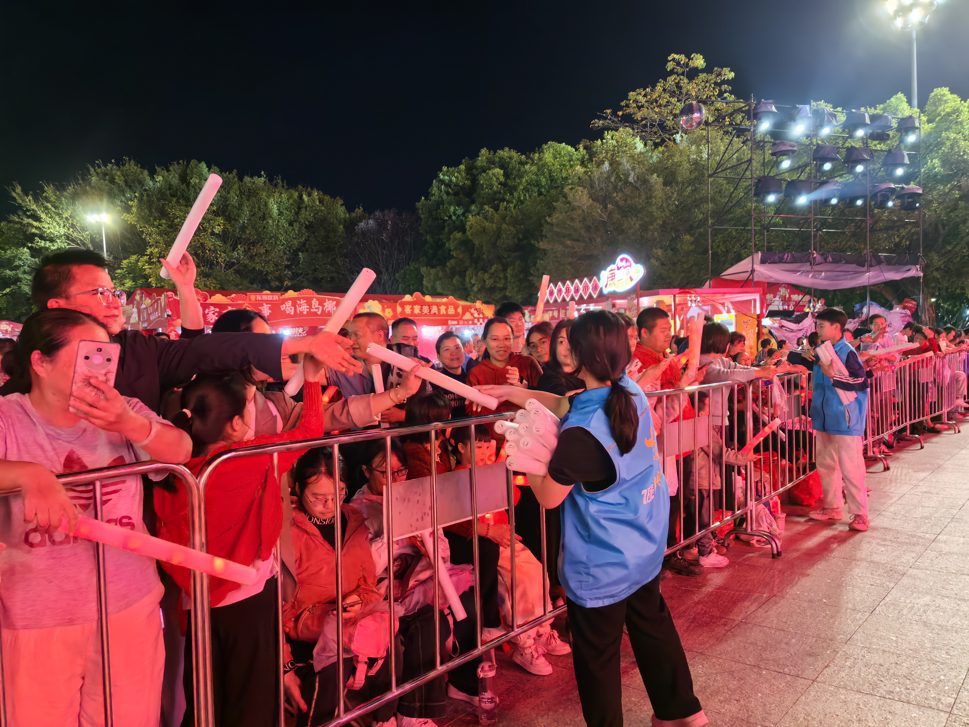 这个春节,院士广场再度成为梅州最具人气与温度的“新春文化会客厅”。每晚华灯初上,这里便聚满了携家带口、闻讯而来的观众。男女老少,笑容洋溢,欢声与灯火交织,构成一幅温馨喜庆的客都新春画卷。