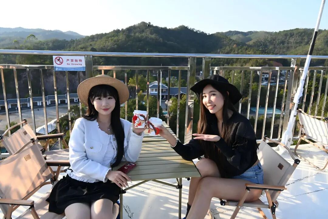 在百米高空的观景位,吹着山风喝一杯融合客家非遗娘酒的特色咖啡浪漫又独特!