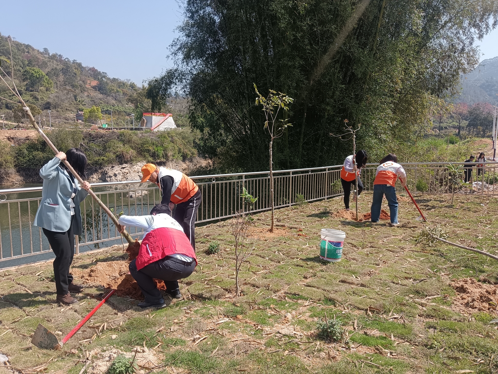 掌上梅州讯 为认真落实省、市“百千万工程”和乡村绿化三年行动计划部署,扎实推进机关与基层党组织结对共建,3月11日,市供销合作社联合中国农业银行梅州分行、广东天禾第九(梅州)党支部,在大埔县大东镇开展“爱绿植绿护绿兴绿”主题党日暨结对共建植树活动。市供销合作社党组书记、理事会主任刘水,中国农业银行梅州分行党委委员、副行长徐淑玲,大东镇党委书记江启清、镇长刘智参加活动。