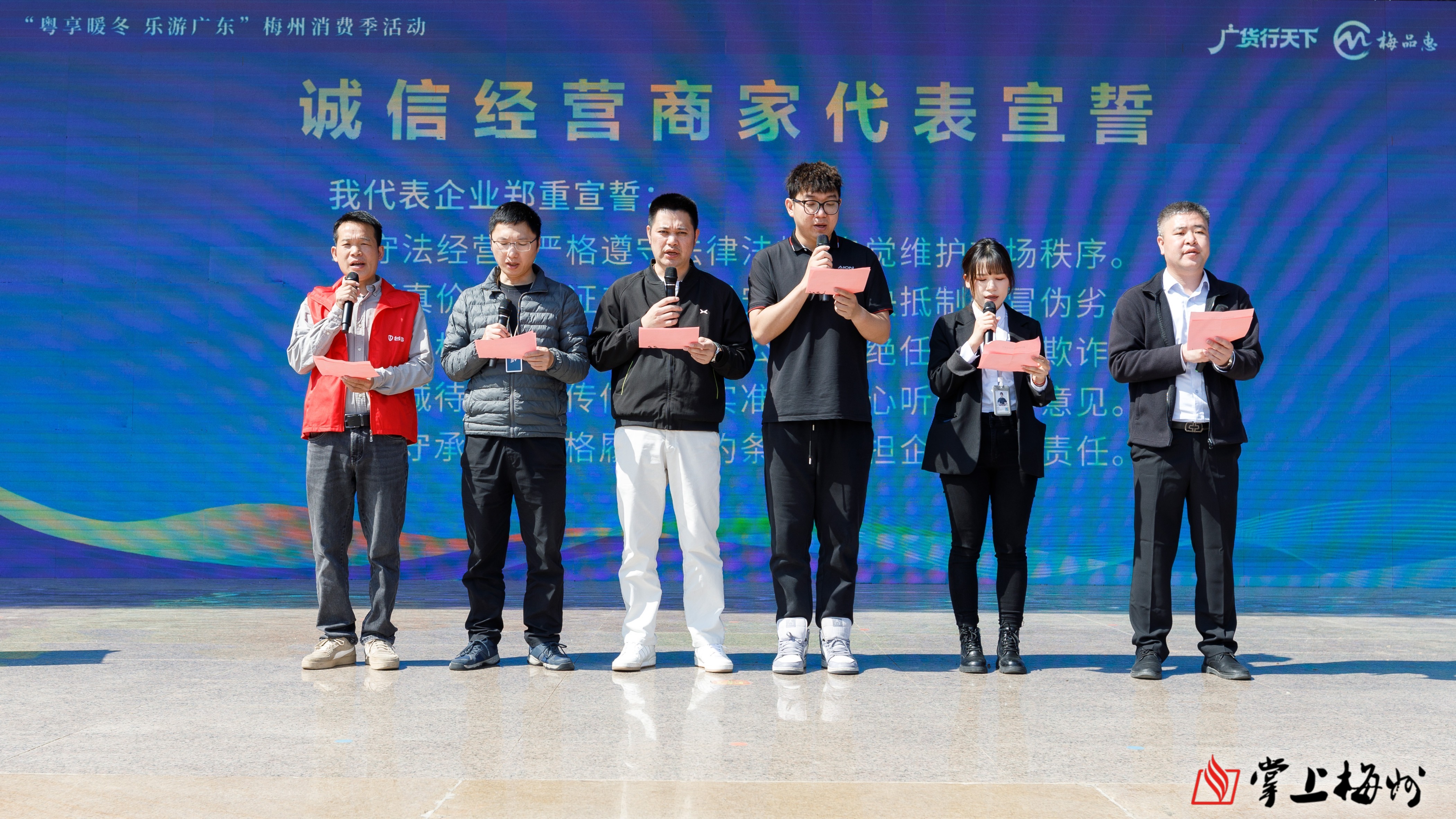 此外,启动仪式上还专门设置了“2026年以旧换新政策解读”与“诚信经营商家宣誓”两大环节。一方面,通过对政策的全面解读,帮助广大市民更清晰、直观地了解具体政策红利;另一方面,商家代表以庄严承诺,传递出梅州打造放心消费环境、营造公平诚信市场氛围的坚定决心。