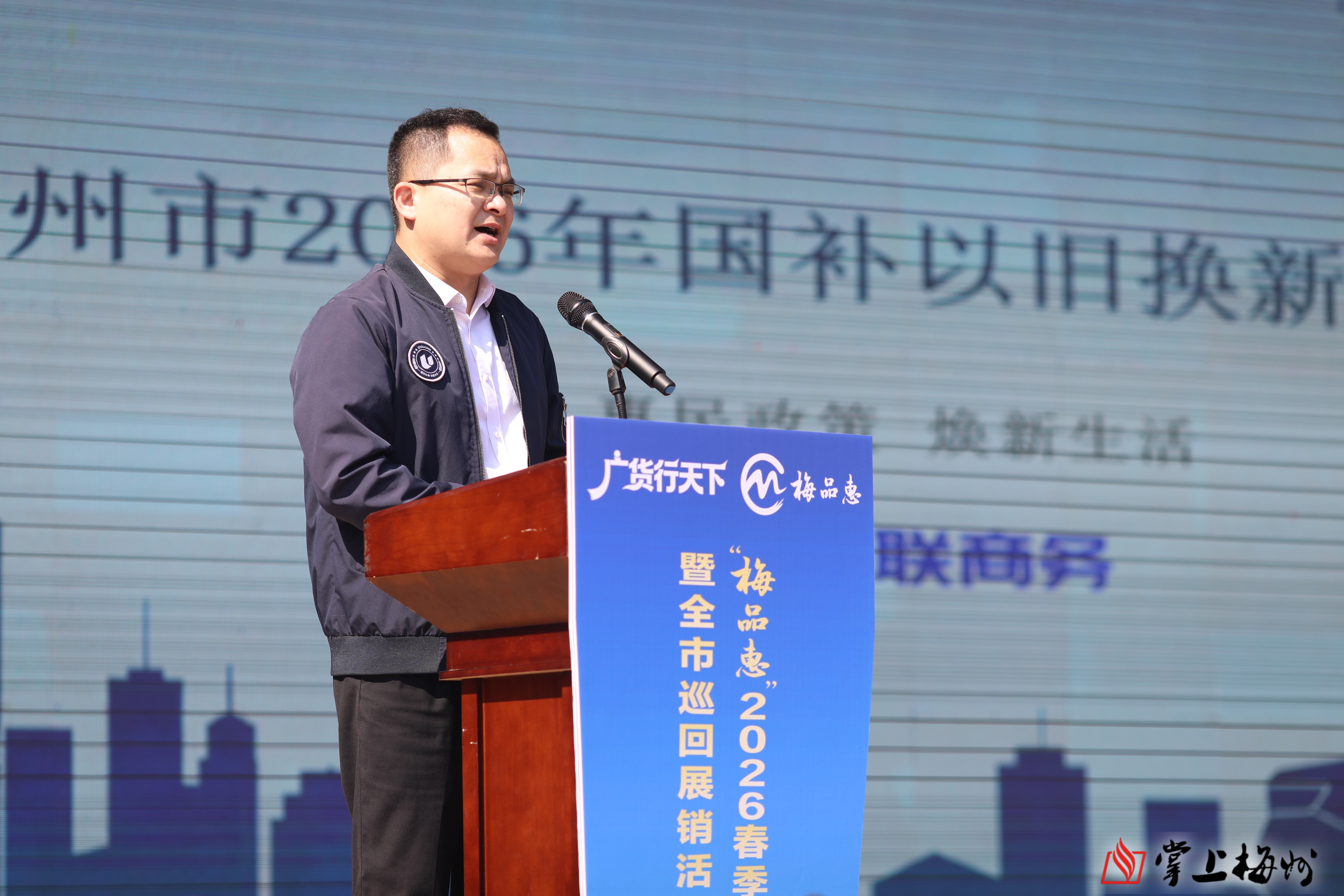 曾远煌在致辞中指出,近年来,梅州市委、市政府始终把促消费、惠民生摆在突出位置,积极融入全省“粤享暖冬 乐游广东”消费季部署,持续推动消费市场提质扩容、转型升级。他表示,此次活动聚焦新能源汽车、3C数码、无人机、智能家电、电动自行车等绿色智能消费热点,汇聚了众多知名品牌,既体现了消费升级趋势,也贴近了百姓日常生活。接下来,我市将以此次活动为起点,在全市范围内巡回开展系列促消费活动,确保政策红利直达企业、直惠百姓,推动“以旧换新”政策落地见效,让“梅品惠”品牌走进千家万户。同时,将继续优化消费环境,提升服务质量,鼓励更多企业参与其中,共同擦亮梅州消费的“金字招牌”。