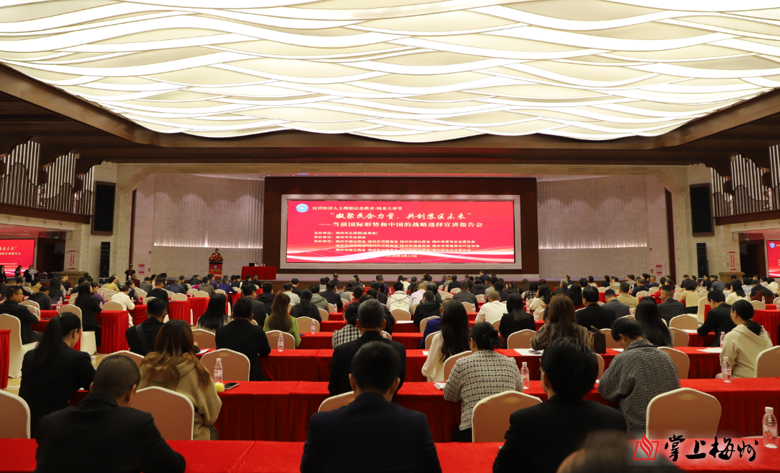 市工商联执、常委企业家,直属商协会负责人,梅州市平远商会会员,市直统战、外事、科协、民主党派干部职工和台港澳企业代表、新阶联会员共约400人参加报告会。
