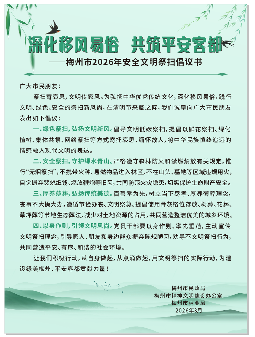 @梅州市民 清明将至,这封安全文明祭扫倡议书请查收→