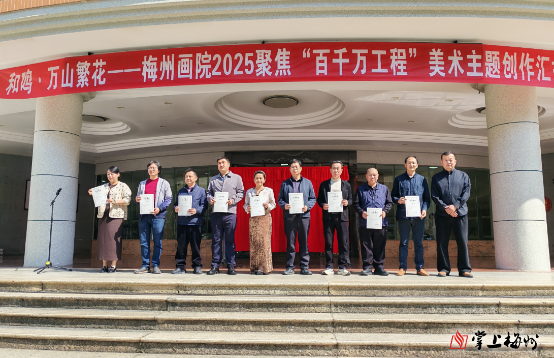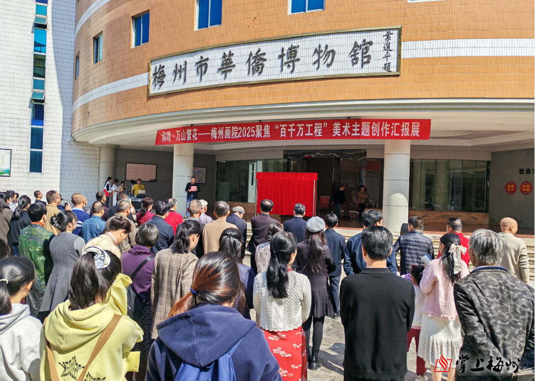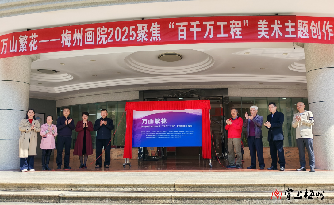 掌上梅州讯 3月15日,和鸣·万山繁花——梅州画院2025聚焦“百千万工程”主题创作汇报展开幕仪式在梅州市华侨博物馆举行。本次展览以丹青为媒、以时代为卷,集中展现梅州美术工作者扎根基层、服务大局,用艺术笔触记录“百千万工程”生动实践、描绘城乡发展崭新图景的创作成果。展览将持续至5月5日。
