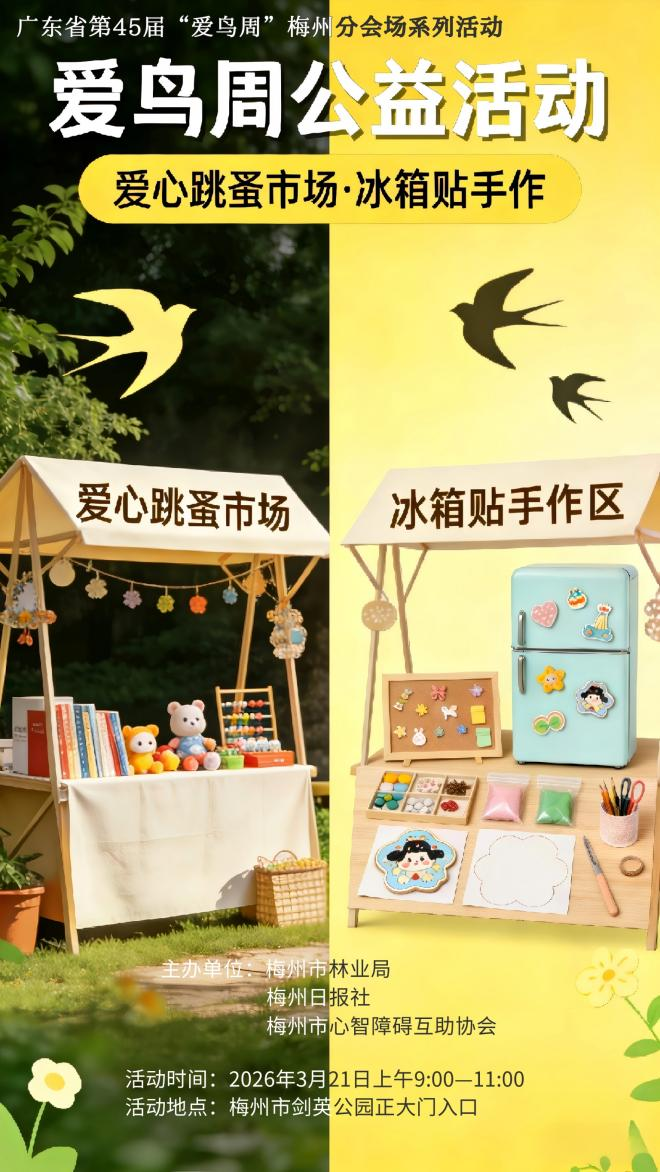 3月21日本周六上午,剑英公园,梅州市林业局联合梅州日报社和梅州市心智障碍互助协会,共同发起一场特别的公益融合活动。我们将招募爱心亲子家庭,与孤独症儿童(星星的孩子)结对,用画笔描绘心中的小鸟,把这份美好定格成可以带回家的“掌心珍藏”。