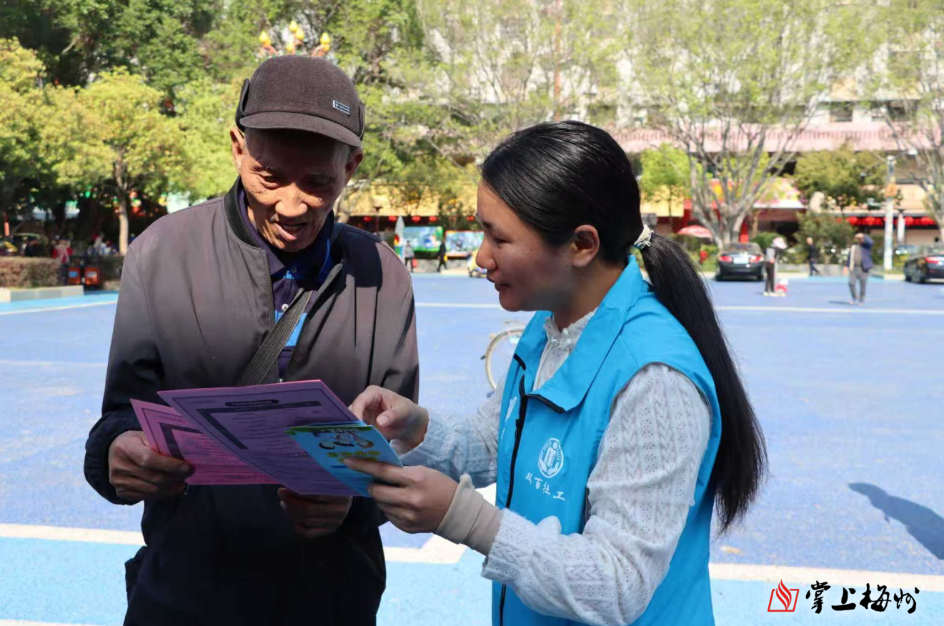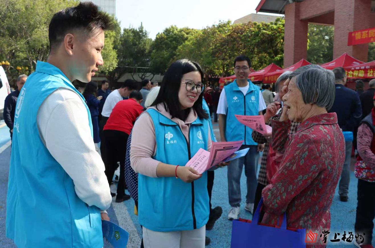 本次活动由梅州市民政局主办,梅县区民政和人力资源社会保障局协办。市民政局相关科室、市“双百工程”督导人员、梅县区一线社工及爱心合作单位共同参与现场宣传。活动现场设置10余个主题宣传摊位,内容涵盖社会工作、社会救助、社会事务与儿童福利、老龄工作及养老服务等重点民生领域,通过政策现场解读、群众答疑解惑等形式,精准传递民生服务信息。同时设置公益义诊专区,为群众提供免费健康咨询、基础诊疗等便民服务,活动共吸引1000余名群众到场参与咨询,有效扩大了社会工作与“双百工程”的社会影响力。