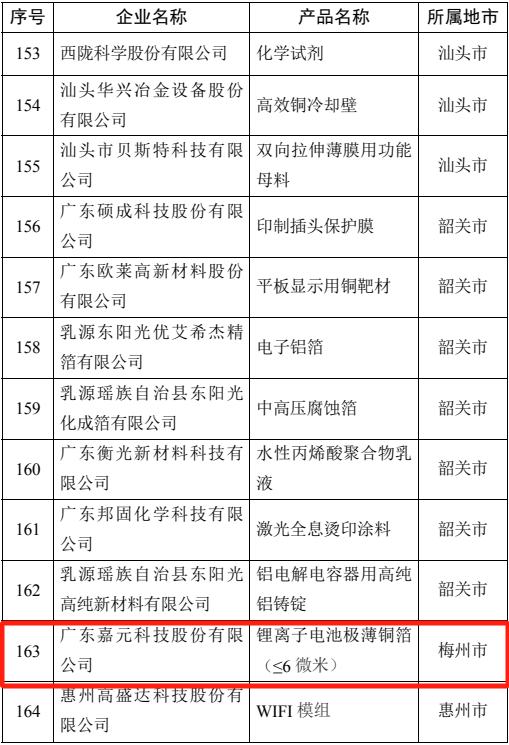 掌上梅州讯 近日,广东省工业和信息化厅公布广东省2025年省级制造业单项冠军企业认定和通过复核企业名单。其中梅州两家企业上榜,广东盈华电子科技有限公司凭借产品“挠性覆铜板用铜箔” 成功被认定为广东省 2025 年省级制造业单项冠军企业;广东嘉元科技股份有限公司则凭借产品“锂离子电池极薄铜箔(≤6 微米)” 顺利通过第一批复核。