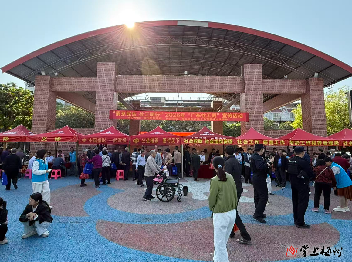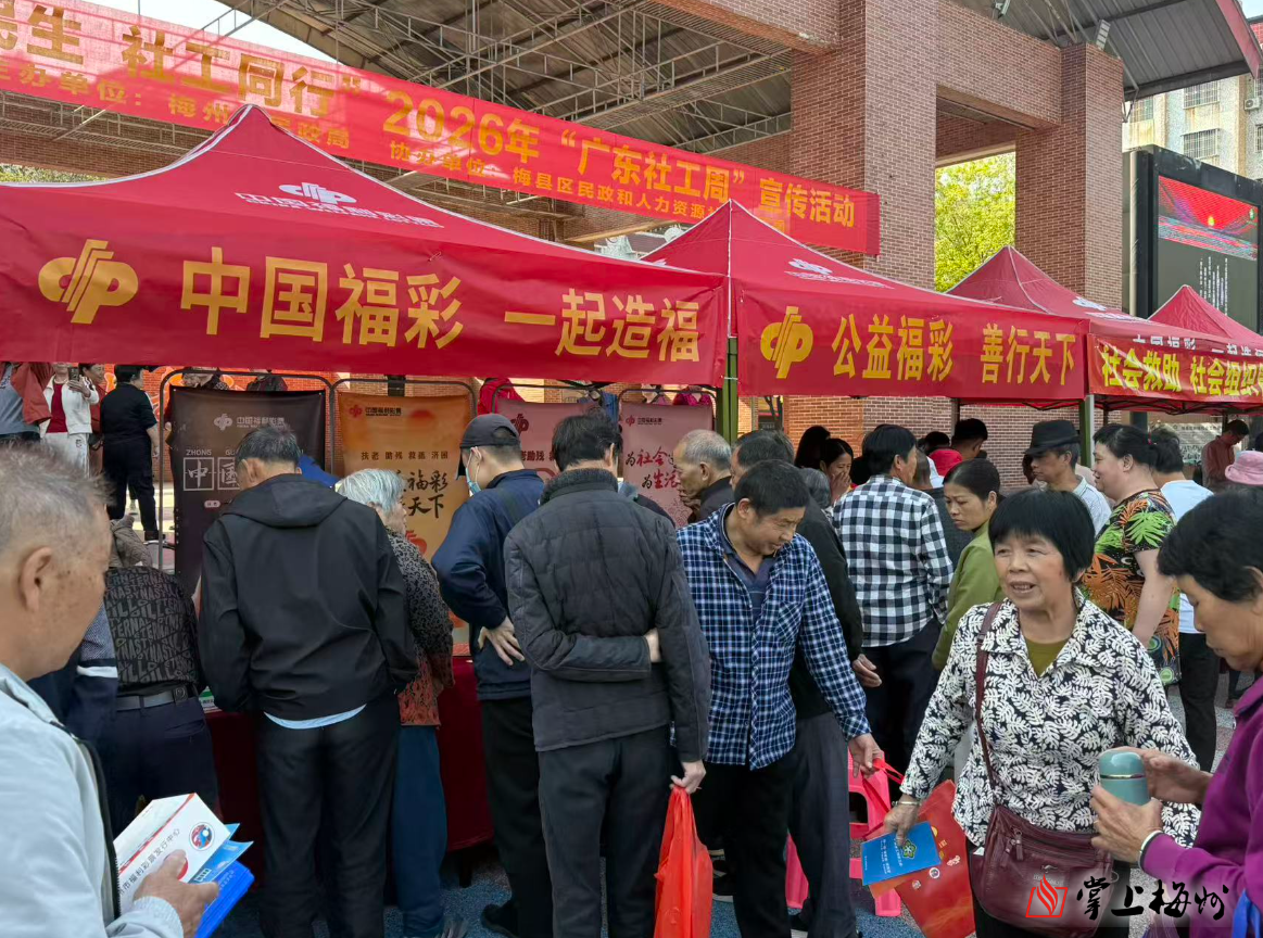 掌上梅州讯 3月17日上午,以“情系民生 社工同行”为主题的 2026 年“广东社工周”宣传活动在华侨城广场正式开展。梅州福彩紧扣公益初心,以“福彩 + 社工”模式创新开展公益宣传,将福彩发行宗旨、公益金发挥的作用与社工一线服务深度融合,面向市民传递温暖有力的公益力量。