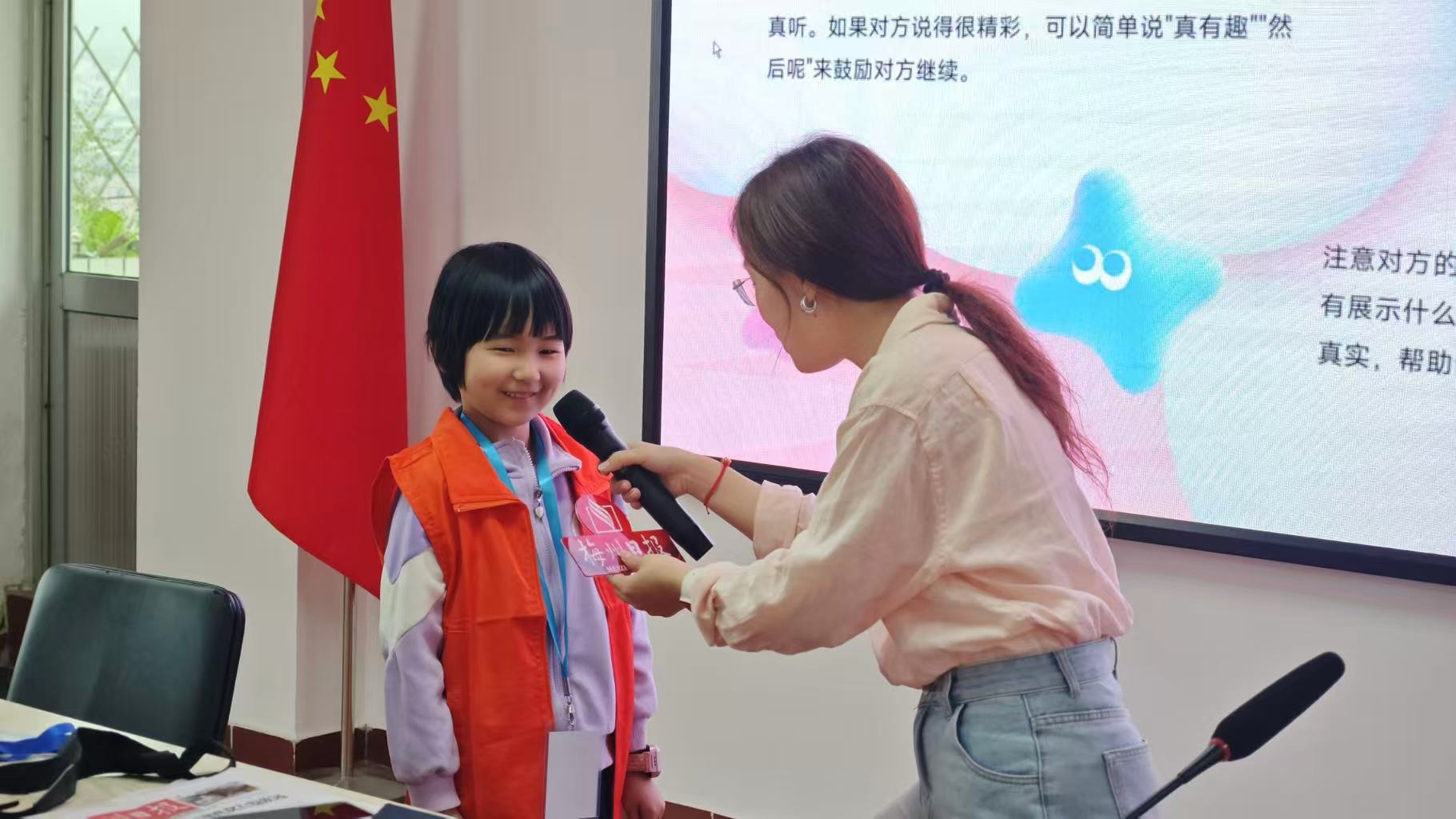 课堂上,赖运香记者结合自身一线采访经验,用通俗易懂的语言、生动鲜活的案例,围绕新闻五要素、采访礼仪、提问设计、现场观察、记录方法等核心内容展开讲解。她重点讲解如何设计开放与封闭结合的问题、如何礼貌开场与收尾、如何在采访中捕捉关键信息,引导小记者从“敢开口”到“会提问”,从“会记录”到“会提炼”。