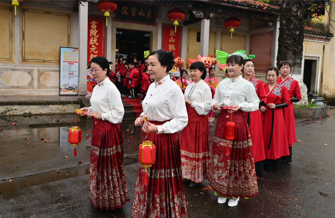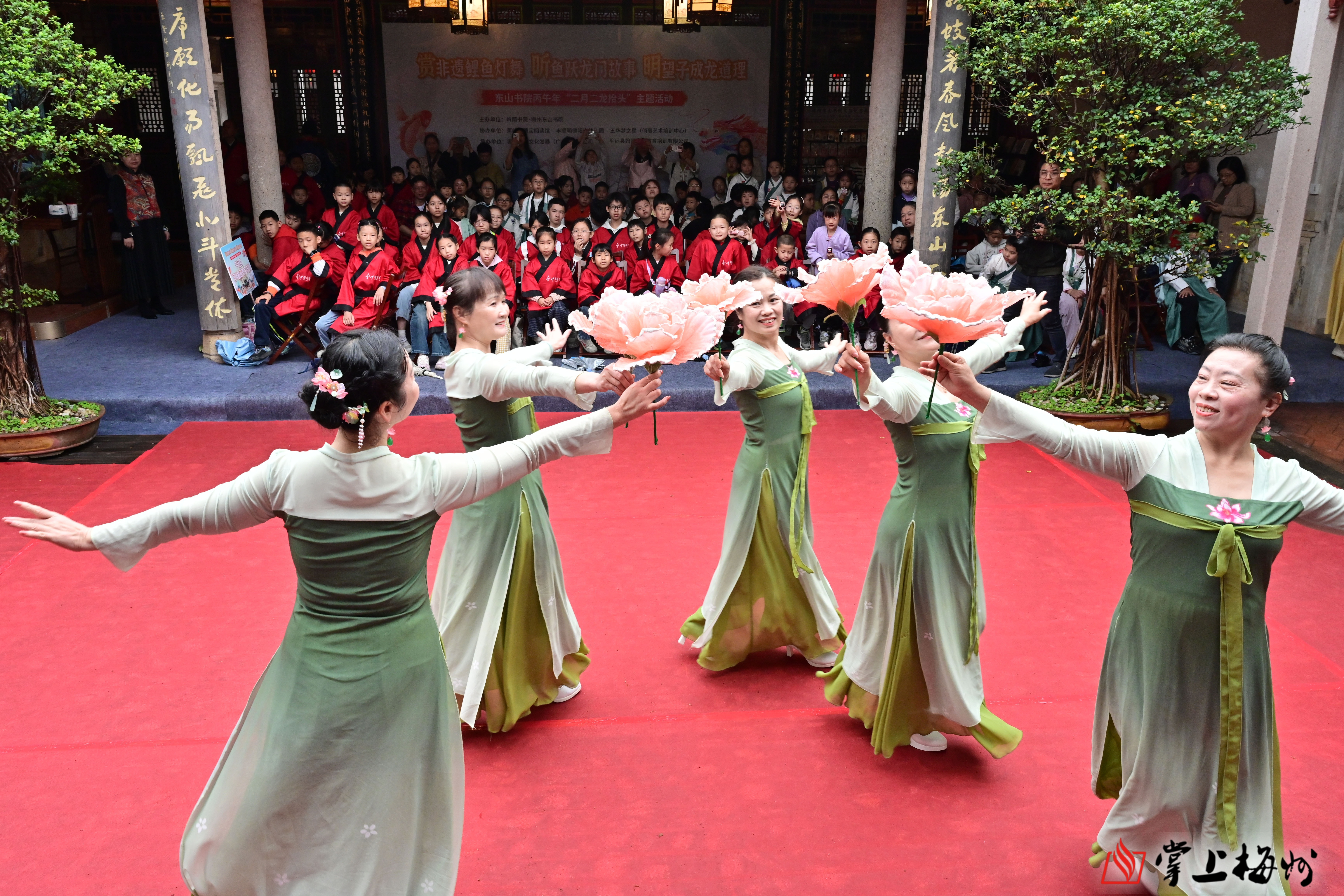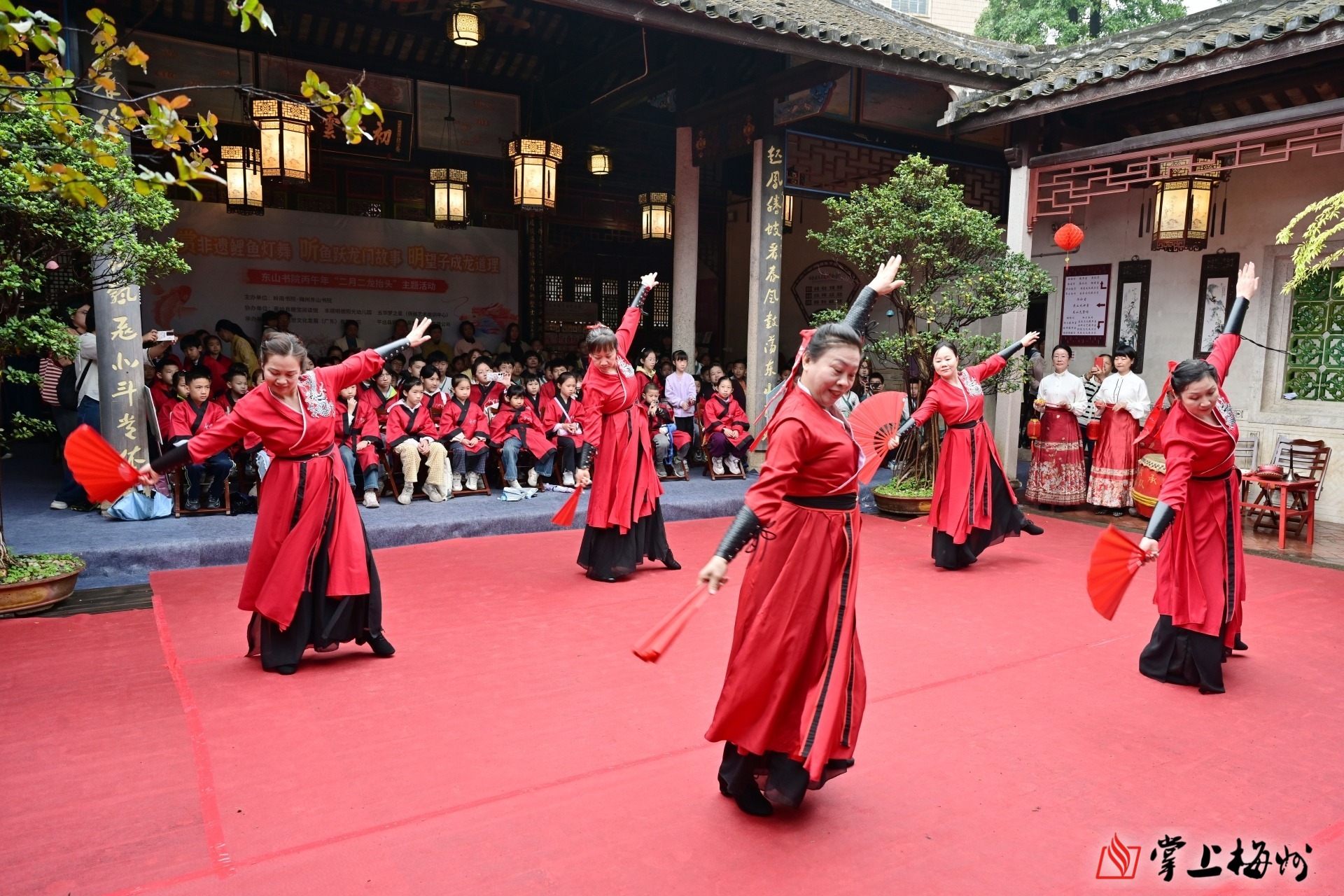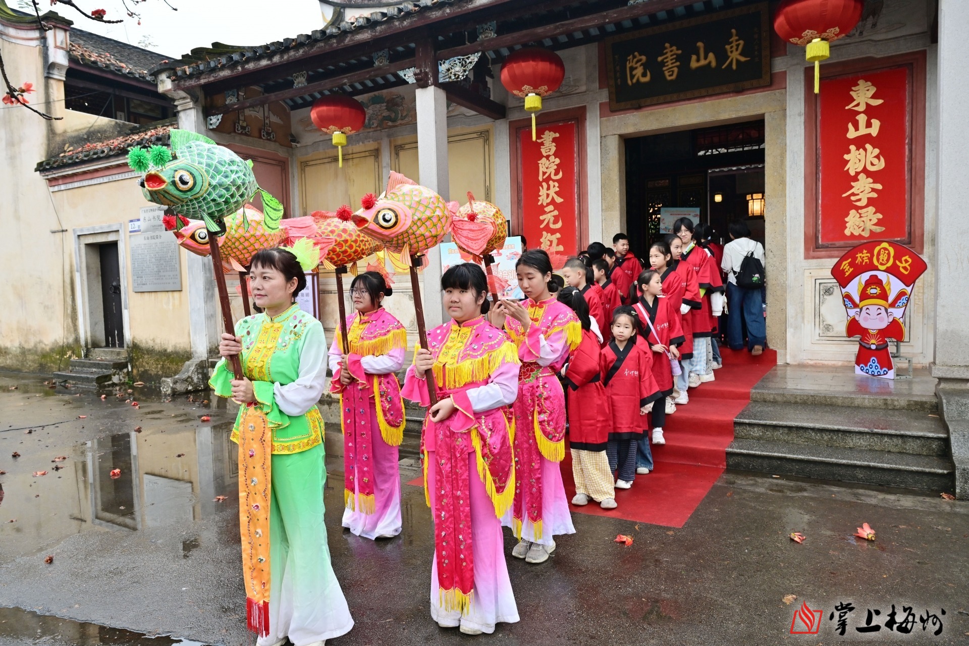掌上梅州讯 3月21日上午9时许,岭南书院・梅州东山书院内鼓乐声声、欢声阵阵。以“赏非遗鲤鱼灯舞、听鱼跃龙门故事、明望子成龙道理”为主题的“龙腾盛世、鱼跃龙门”丙午年二月二传统文化体验日活动在这里举行。活动以非遗展演、故事分享、亲子互动、文化体验为载体,让百余名青少年与家长沉浸式感受传统民俗魅力,在欢声笑语中传承中华优秀传统文化,厚植崇文重教的客家精神。