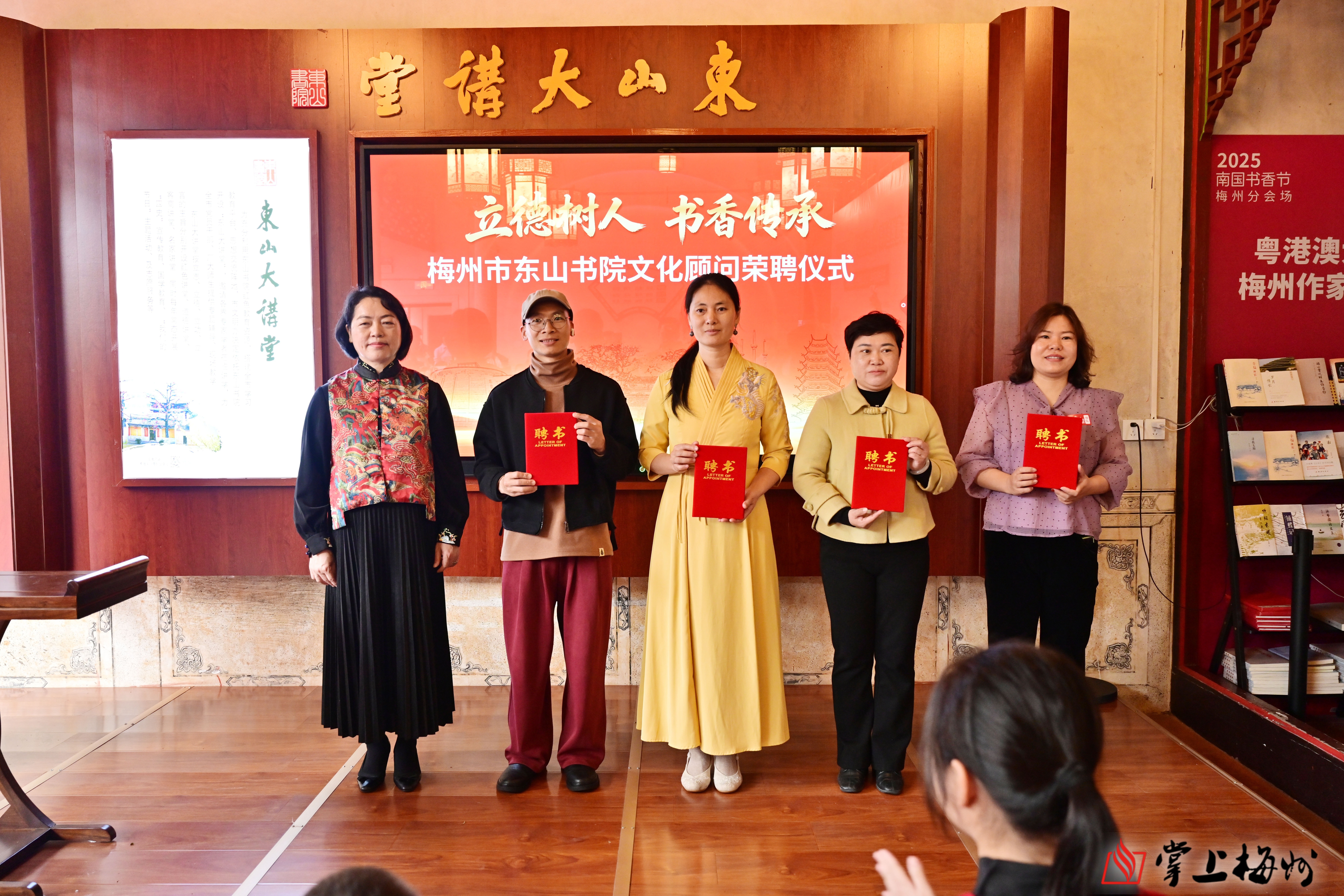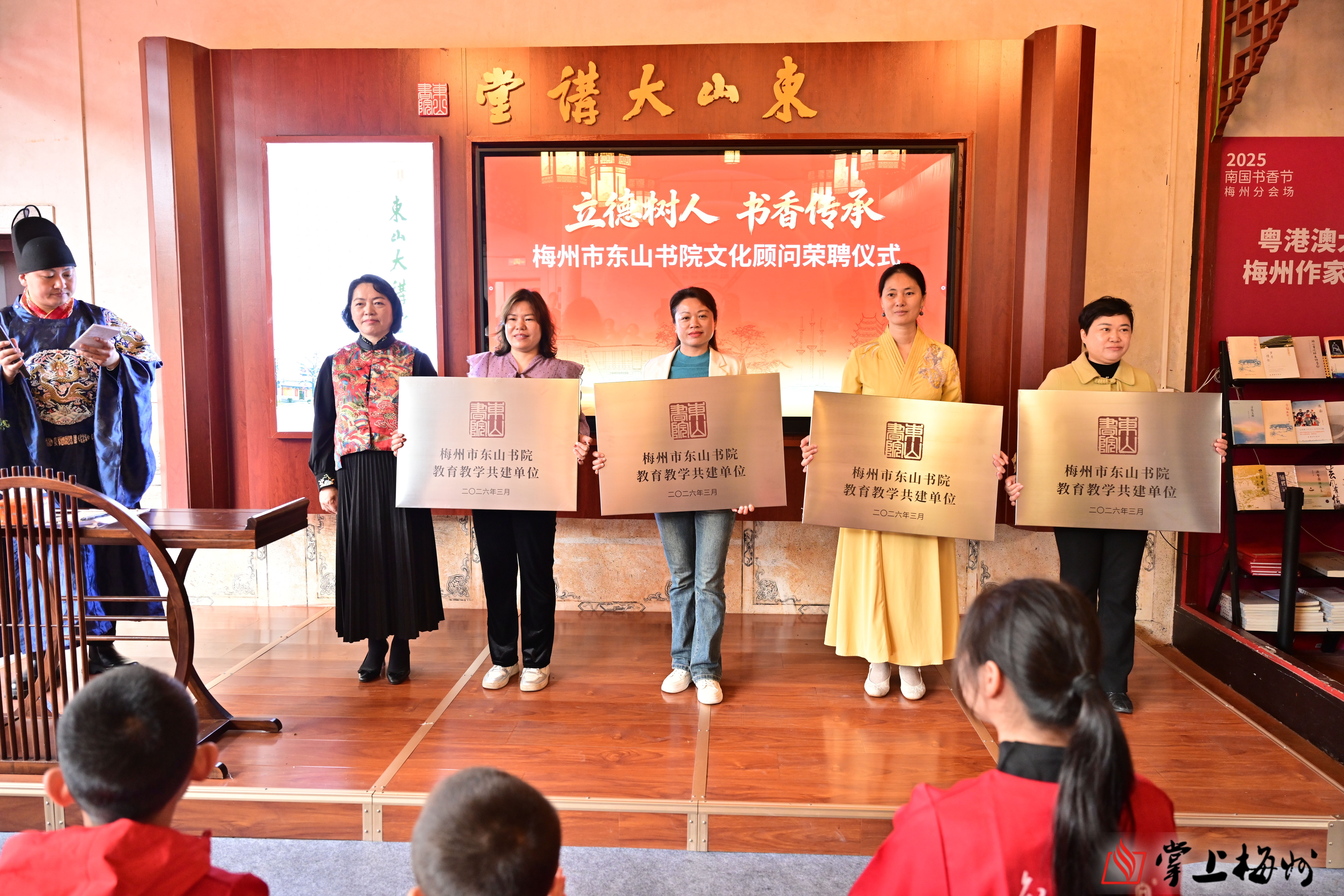 活动当天,东山书院还举行了共建单位授牌与荣誉顾问聘任仪式。蕉岭县糖宝阅读馆、五华县梦之星(俏丽艺术培训中心)、平远县妈咪童画临风堂书画院、丰顺县明德阳光幼儿园四家教育机构获授“梅州市东山书院教育教学共建单位”;阮利娟、温燕青、张巧巧、黄英华四位老师受聘为书院荣誉顾问。