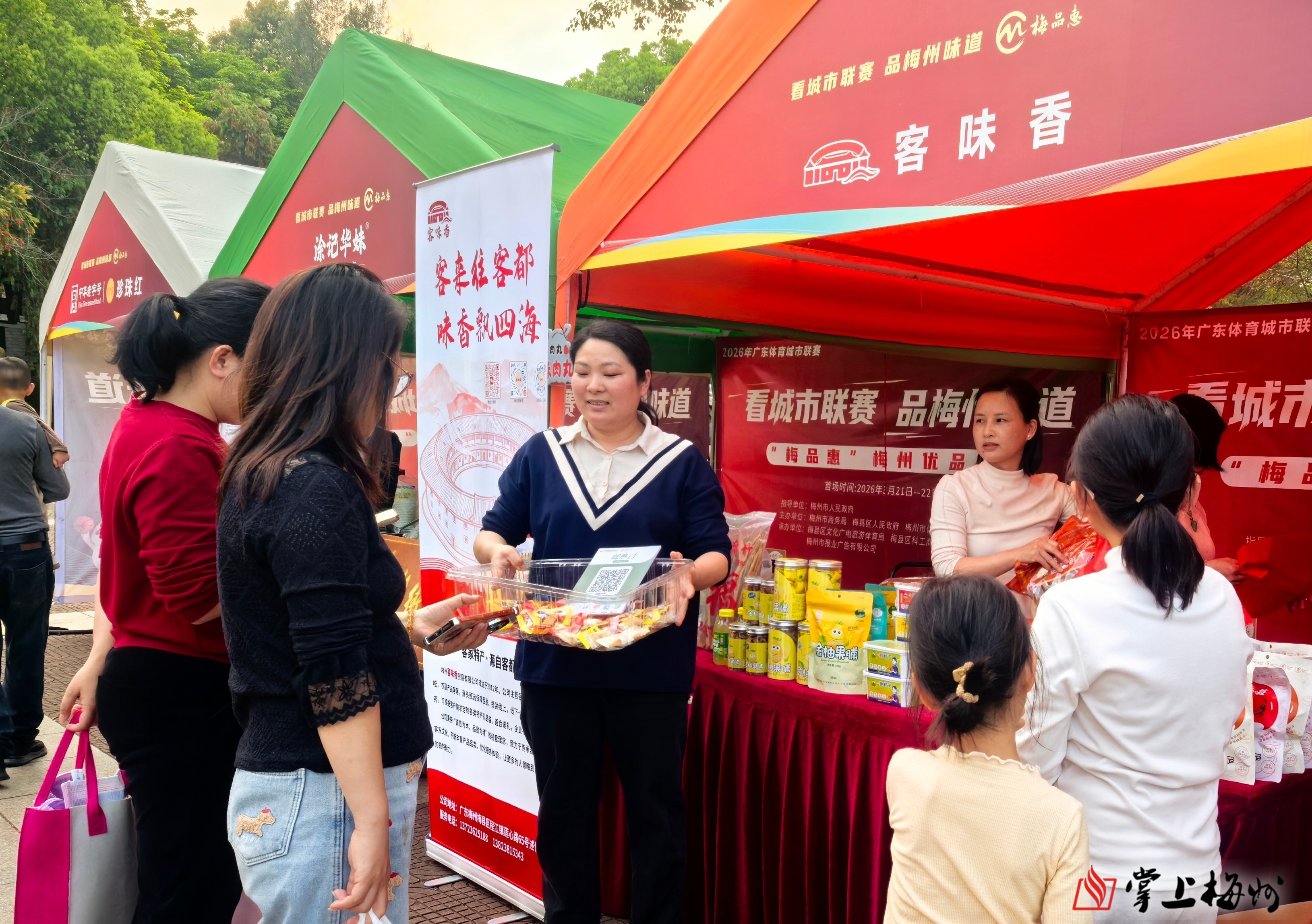 据了解,该系列活动由梅州市商务局、梅县区人民政府、梅州市体育局、梅州日报社主办,梅县区文化广电旅游体育局、梅县区科工商务局、梅州市报业广告有限公司承办,以“体文商旅”融合为主线,依托城市联赛的热度,打造集梅州老字号、地道美味、农特产品、文创手信、旅游推介于一体的沉浸式消费体验场景,全面展现梅州的城市魅力与消费活力。
