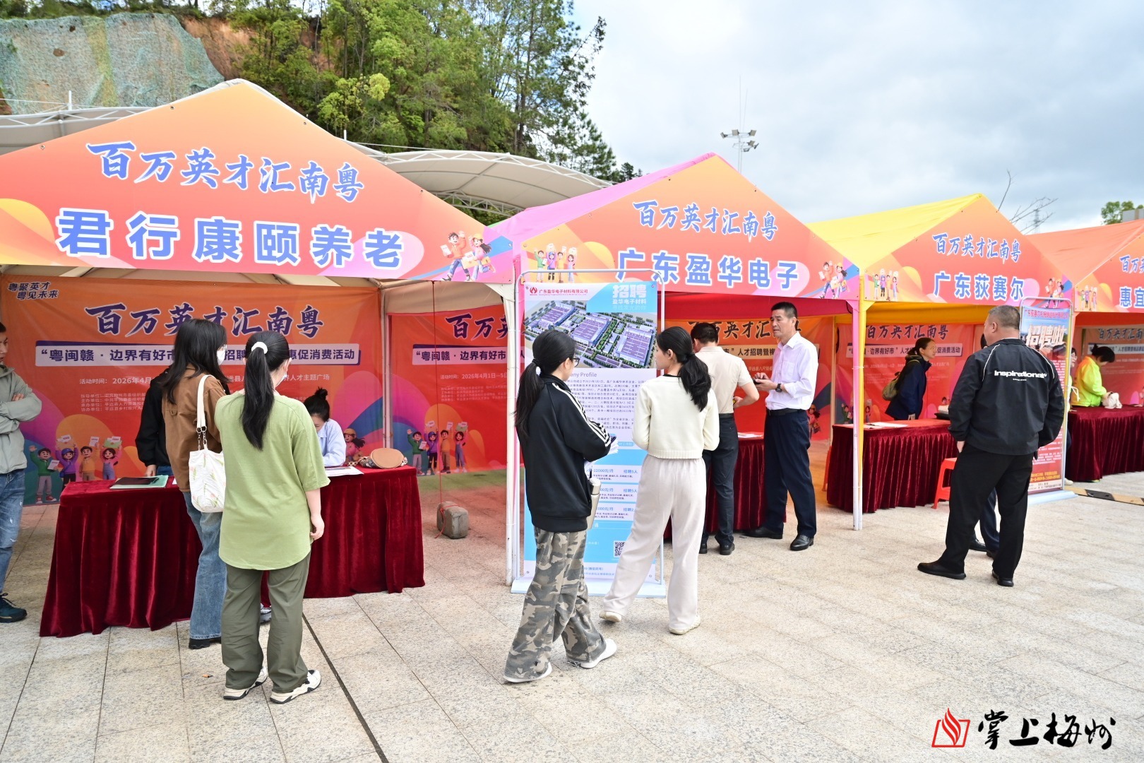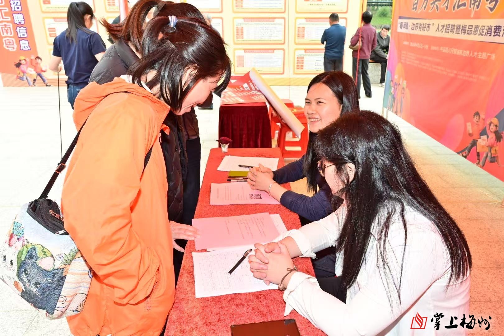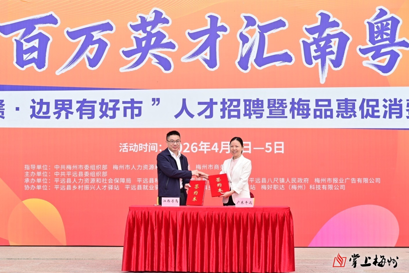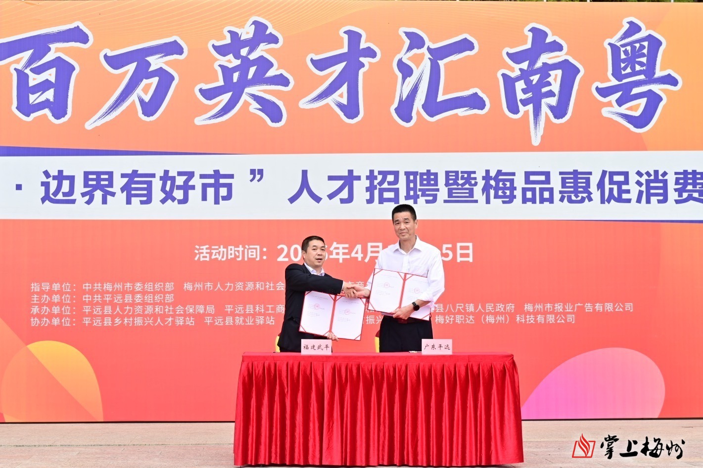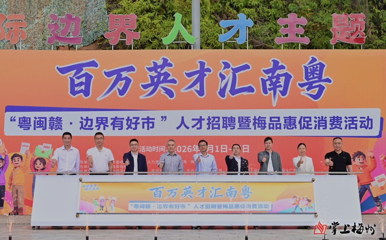 掌上梅州讯 4月1日上午,“百万英才汇南粤——‘粤闽赣·边界有好市’人才招聘暨梅品惠促消费活动”在平远县八尺镇省际边界人才主题广场举行,粤闽赣三省政企代表、求职者齐聚一堂,共搭人才交流桥梁,共促边界消费活力,助力苏区融湾先行区建设。