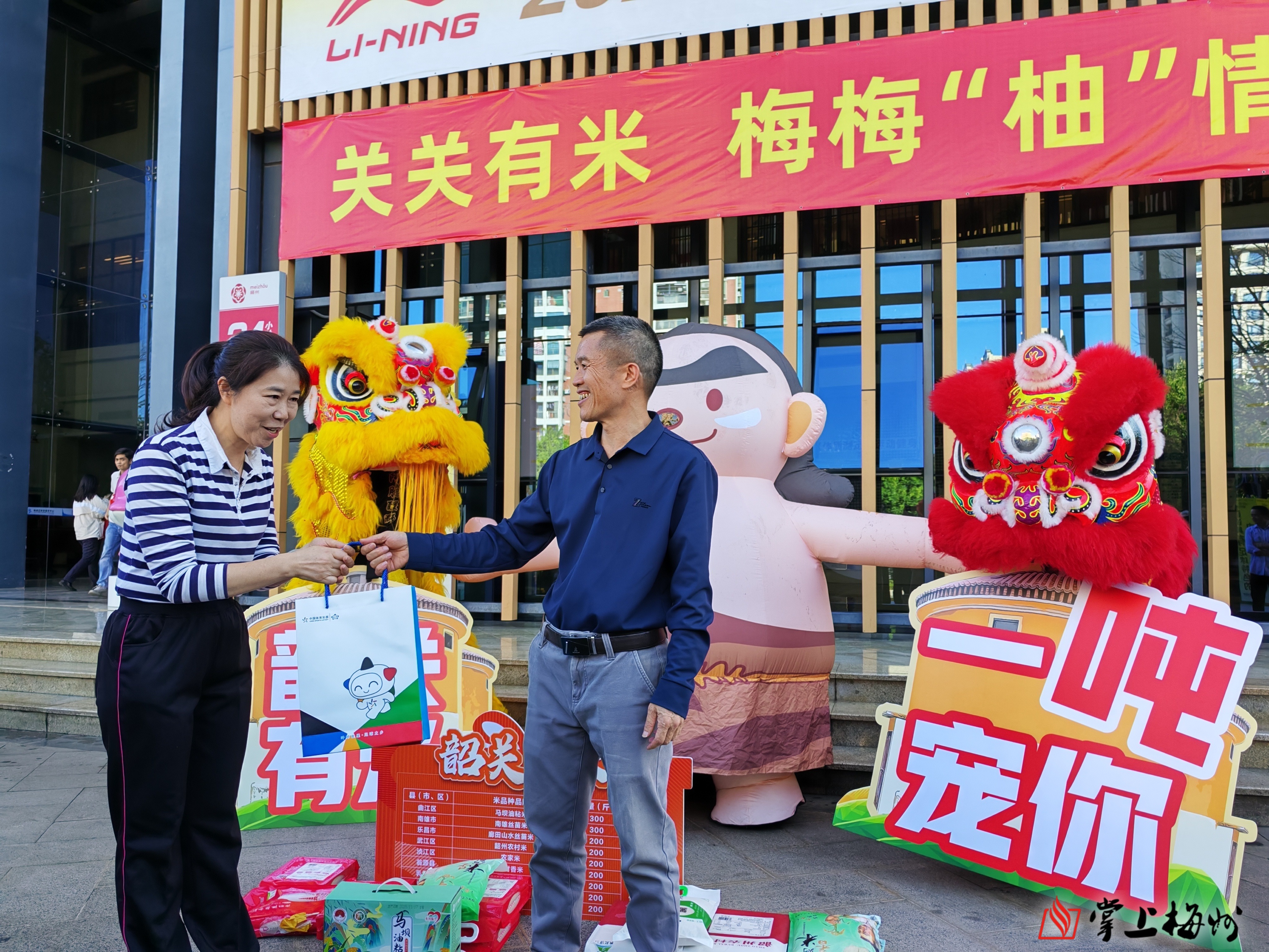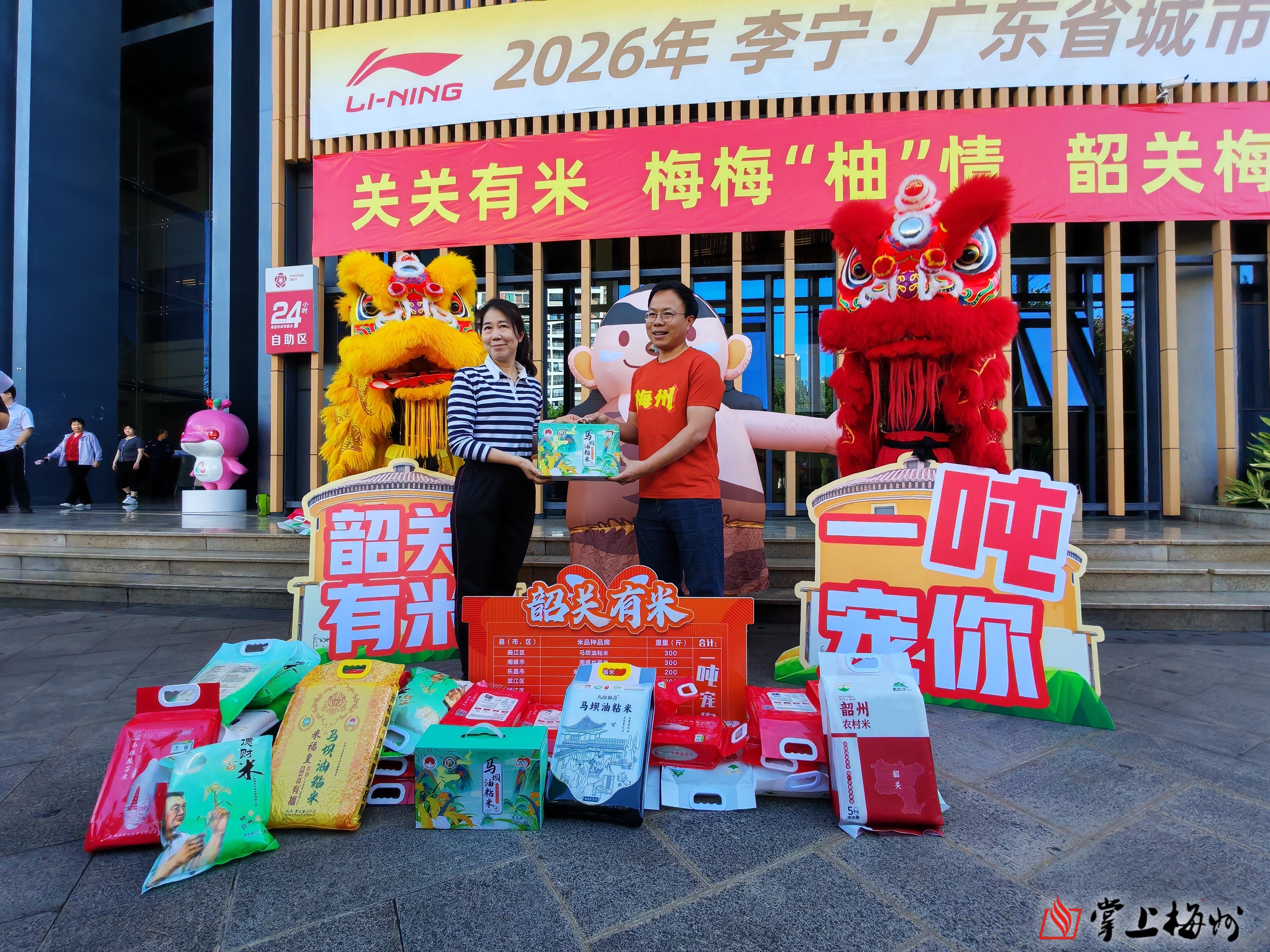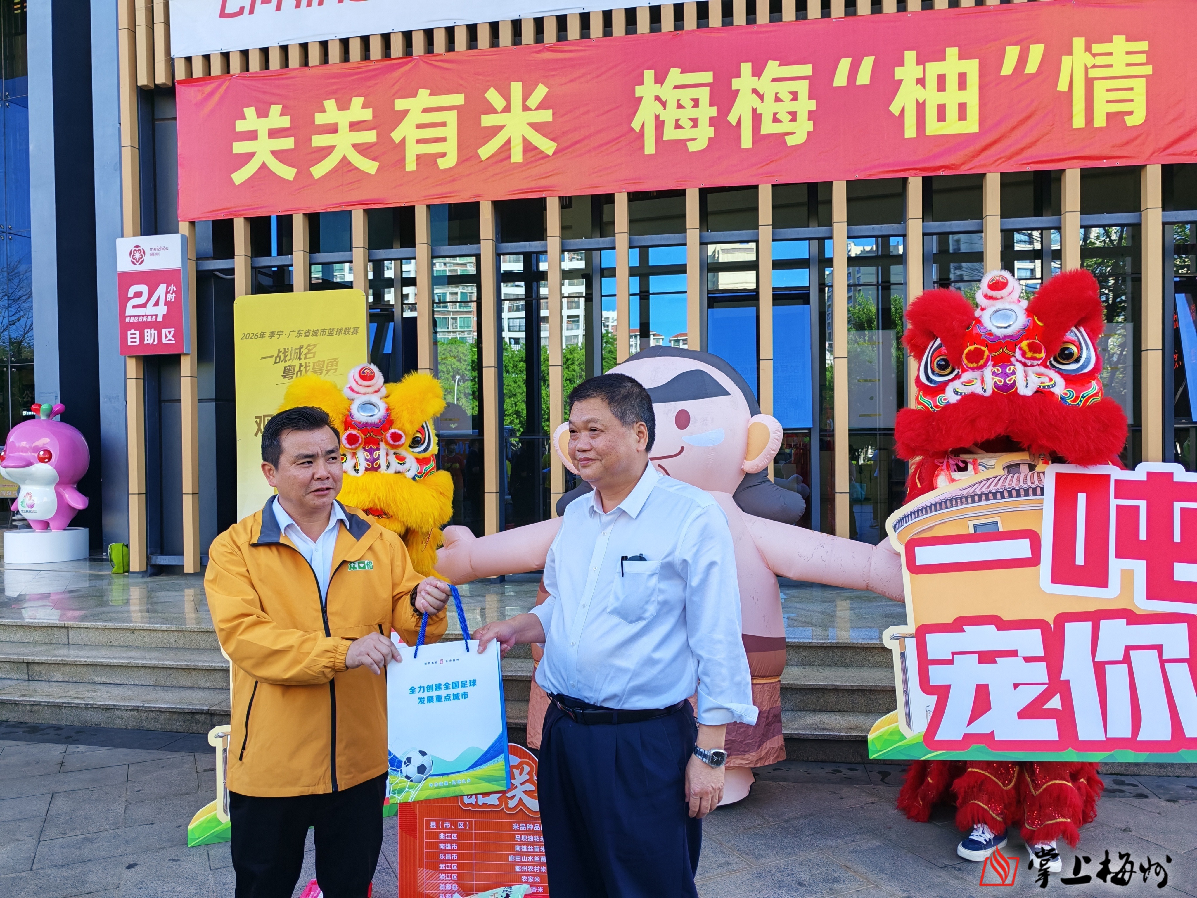 活动现场锣鼓喧天、醒狮欢腾,一派喜气洋洋。活动中,韶关市代表团向梅州市代表团赠送一吨香米,梅州市代表团则向韶关市代表团回赠农创柚子系列产品。