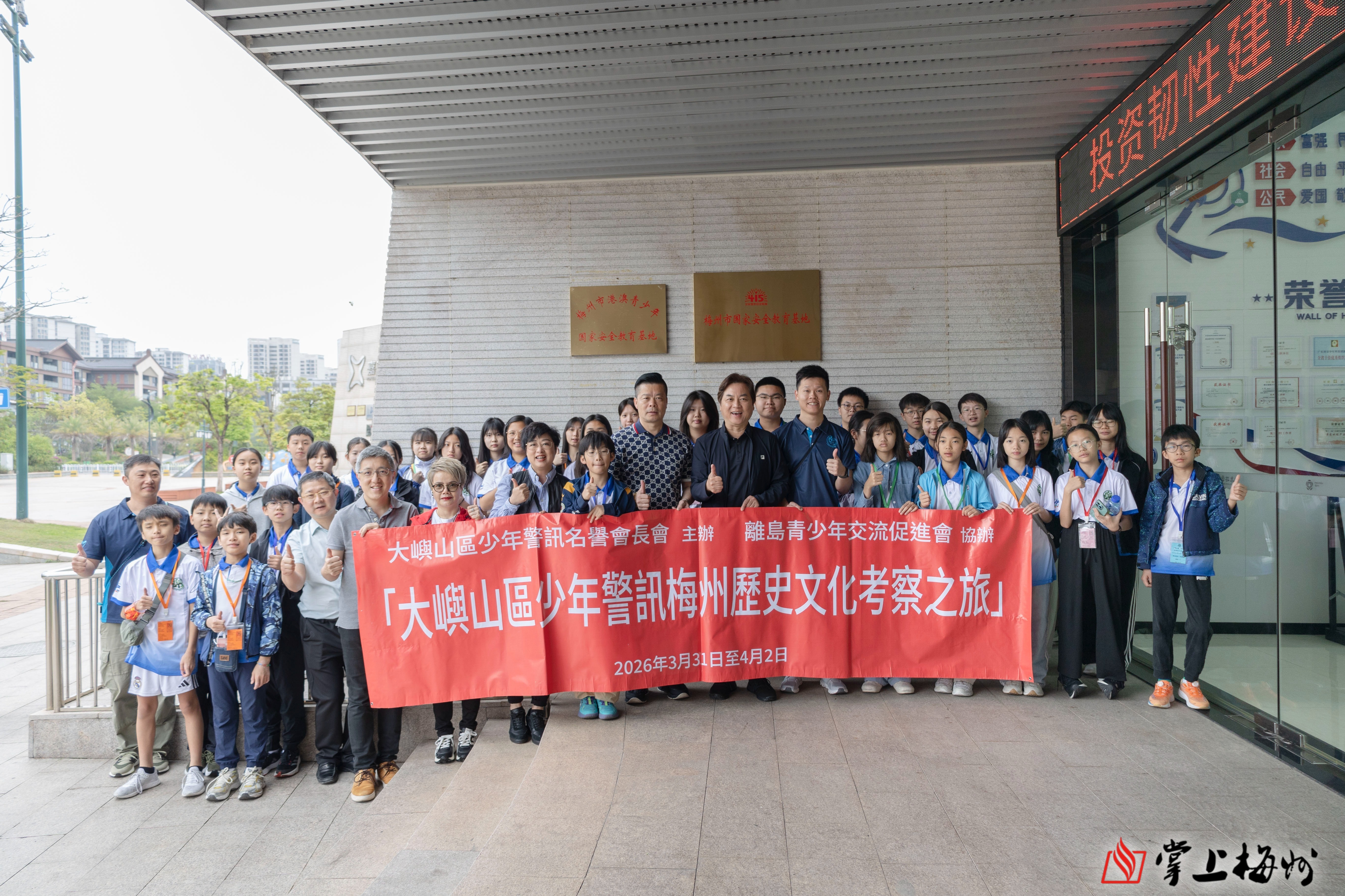 3月31日至4月2日,由大屿山区少年警讯会长会副主席吴彩华发起,香港大屿山区少年警讯组织的交流团40余人来到梅州,开启为期3天的文化交流活动。交流团走进博物馆、探访革命旧址,并与本地学生结对互动。