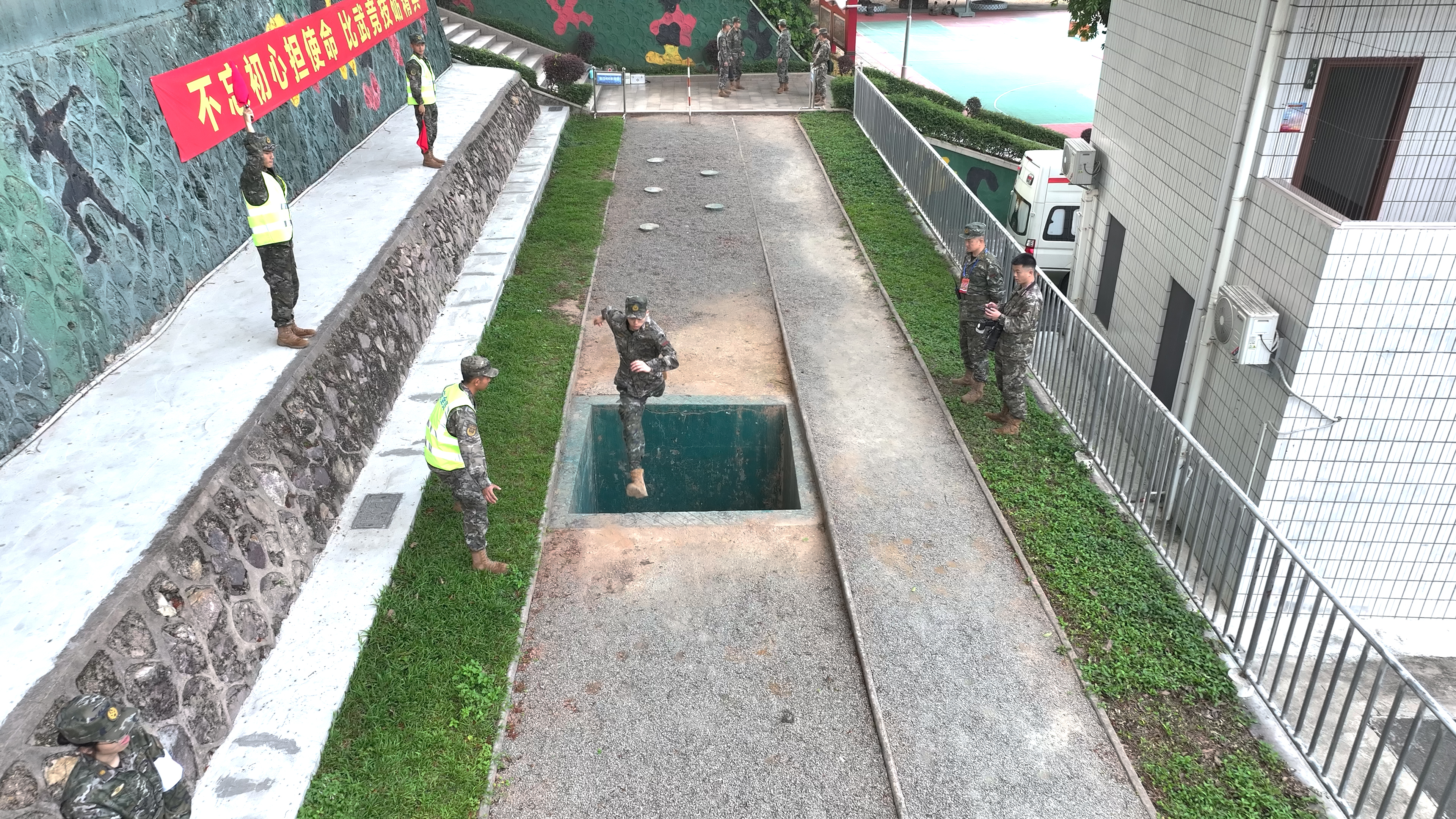 飞矮墙、越深坑、攀绳索,每一次跨越都是勇气与汗水的碰撞,每一次坚持都是意志与信念的升华。即便体力透支,也始终坚守“不抛弃、不放弃”的信念,用拼搏诠释军人本色。