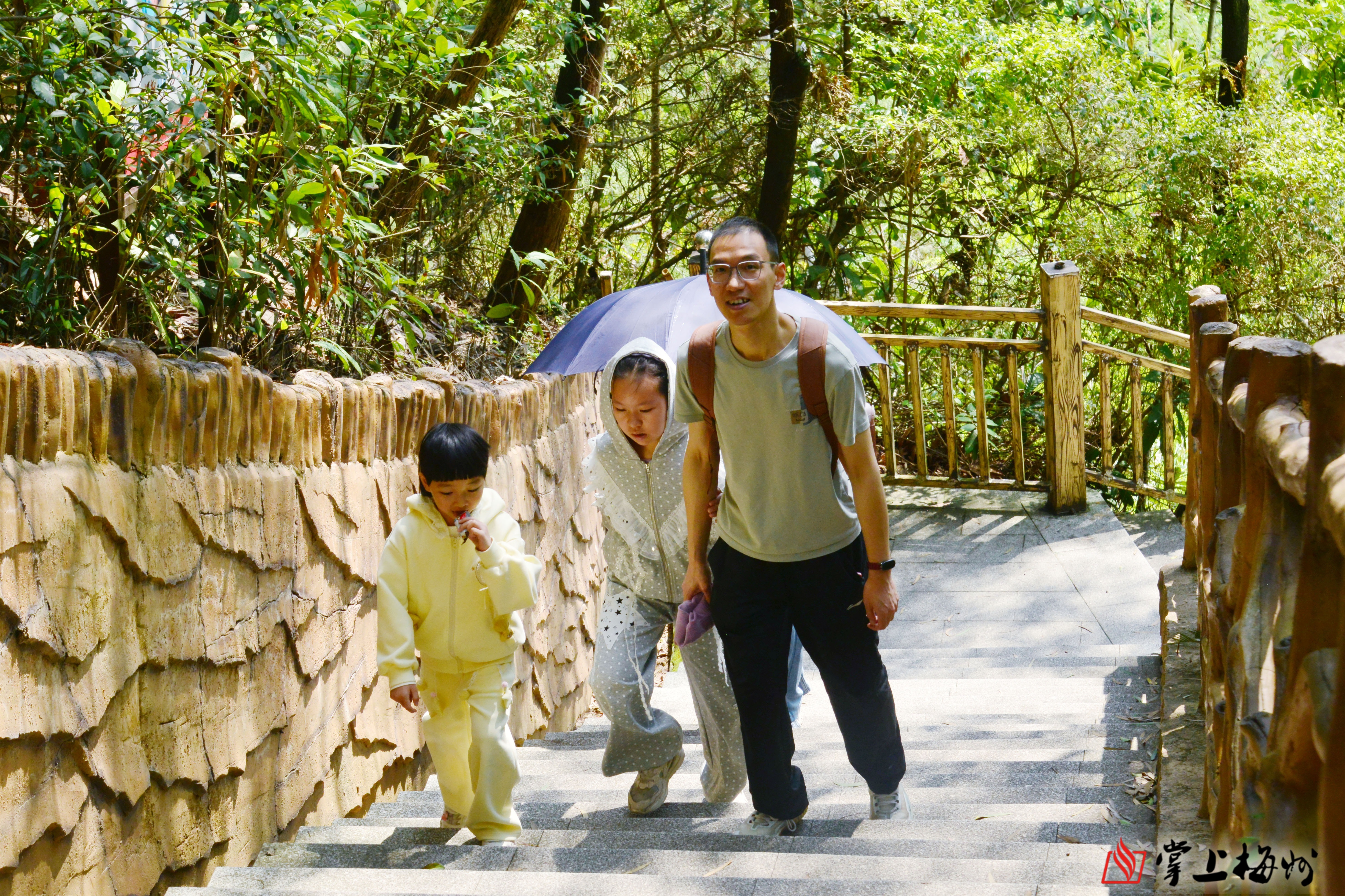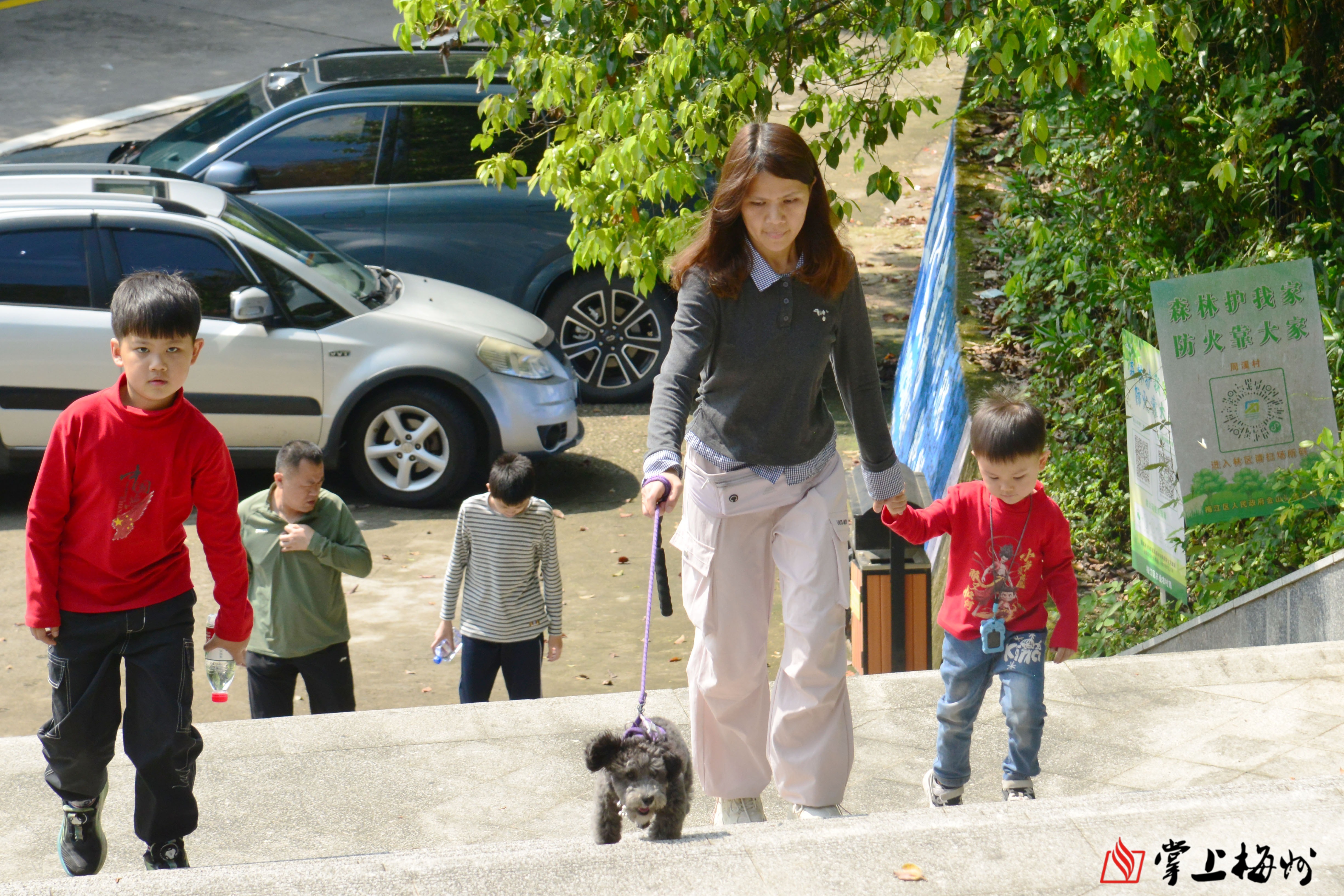 掌上梅州讯 清明假期第一天,天气转晴,阳光明媚。记者走访百岁山郊野公园、泮坑风景区等地看到,大批市民趁着晴好天气走出家门,登山踏青、环湖漫步,近郊景区迎来假期出游高峰。