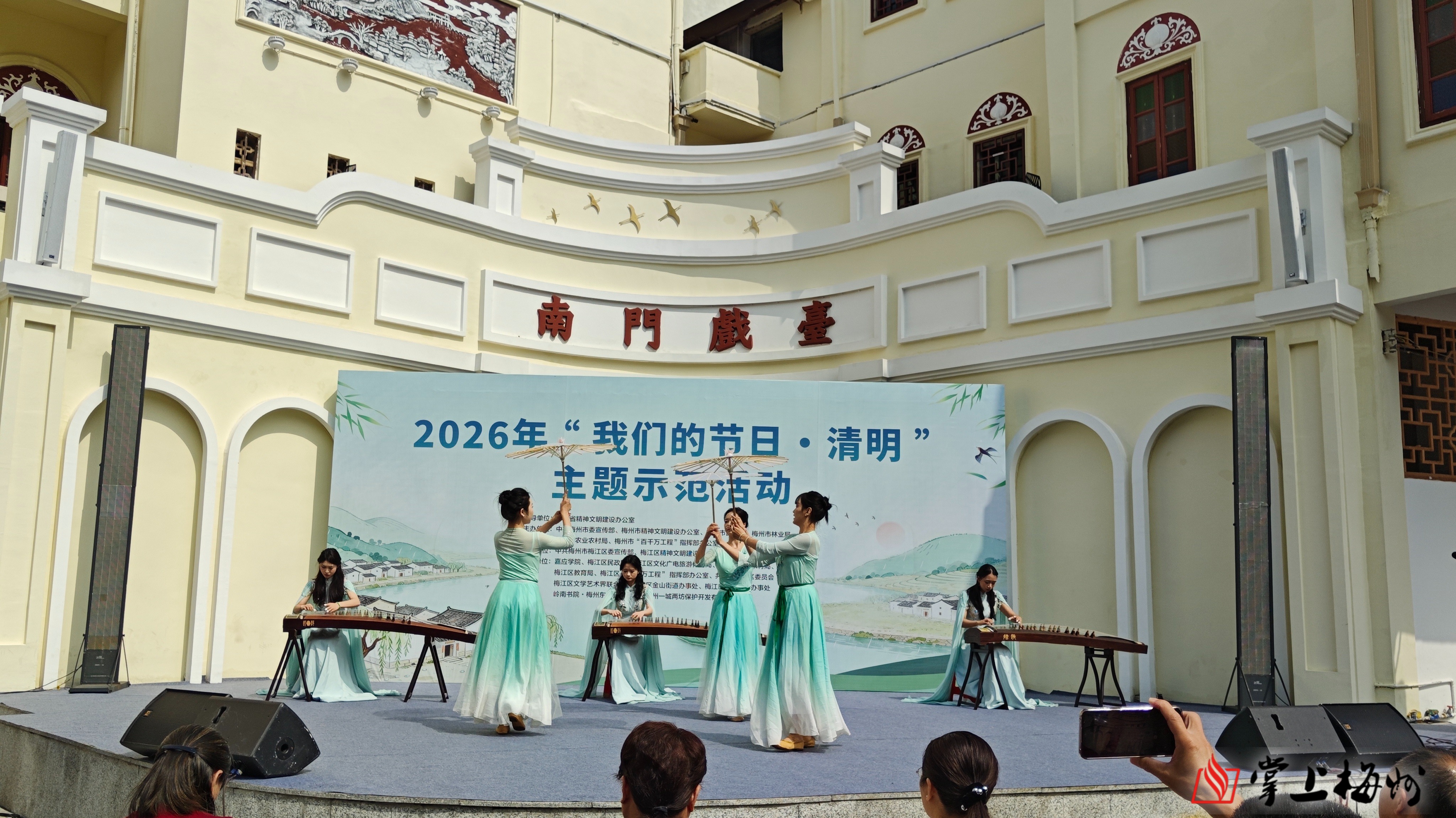 伴随着《春颂》清新悠扬的旋律响起,来自东山书院的表演者身着汉服,或持着花或撑着油纸伞,踩着小碎步缓缓登台,衣袂翩跹间将千年清明雅韵娓娓道来,拉开活动序幕。紧接着,诗朗诵《清明·绿》、客家童谣山歌合唱《客都少年说》、客家筝曲《清明雨上》等节目轮番上演,以群众喜闻乐见的形式传递清明文化内涵与绿色祭扫理念。