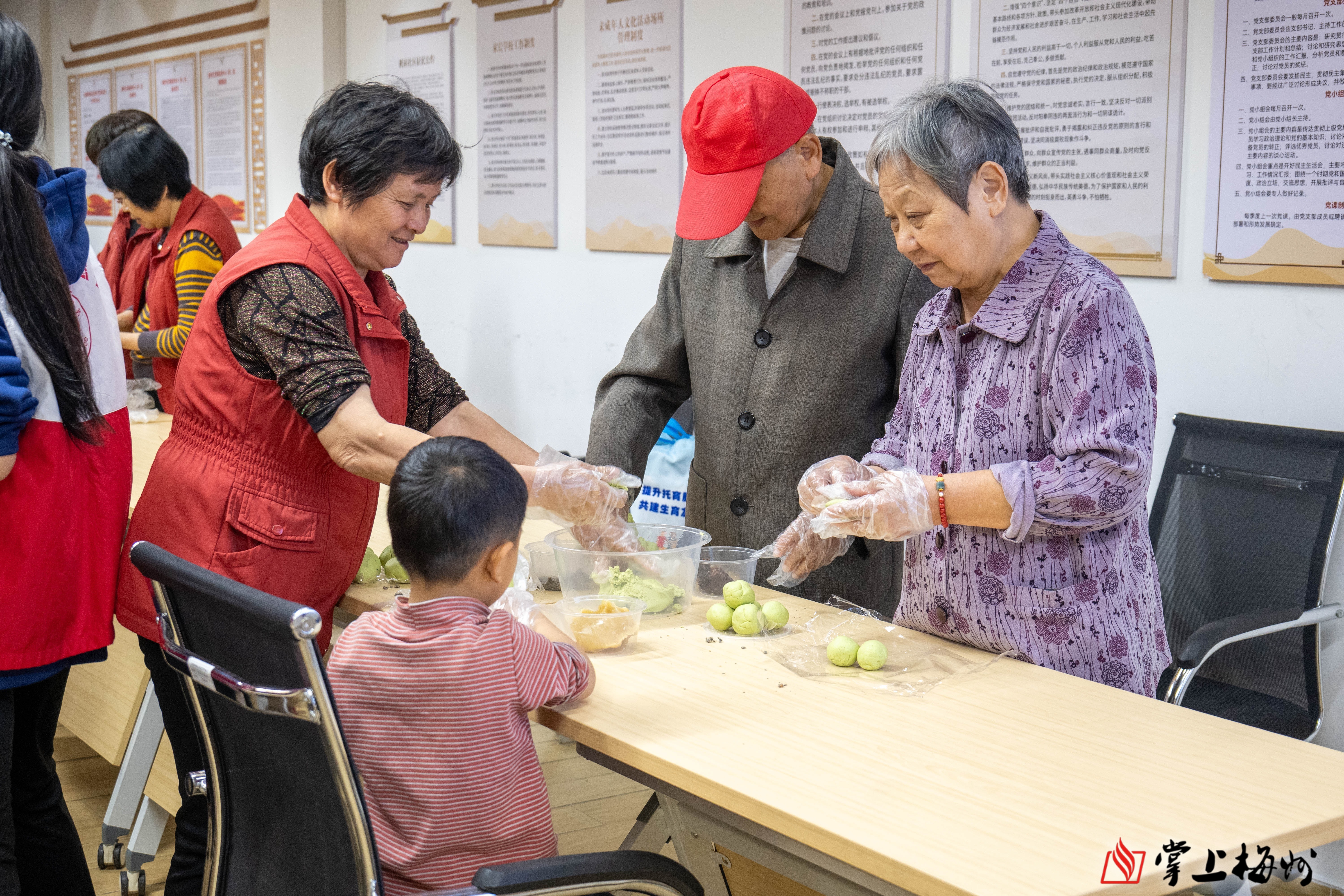 居民们围在一起制作青团,增进邻里情。(梅江区三角镇利园社区供图)