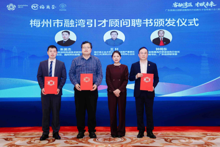 活动中,罗盛芬向3位拥有丰富国内外人才资源的知名人士颁发聘书,聘请他们成为梅州市首批融湾引才顾问。她希望各位顾问能发挥“以才引才”作用,宣传引才政策、搭建交流平台,助力梅州大力引进更多高层次人才、高效对接产才项目、推动产才融合发展,为苏区融湾先行区建设提供更充足的人才支撑。