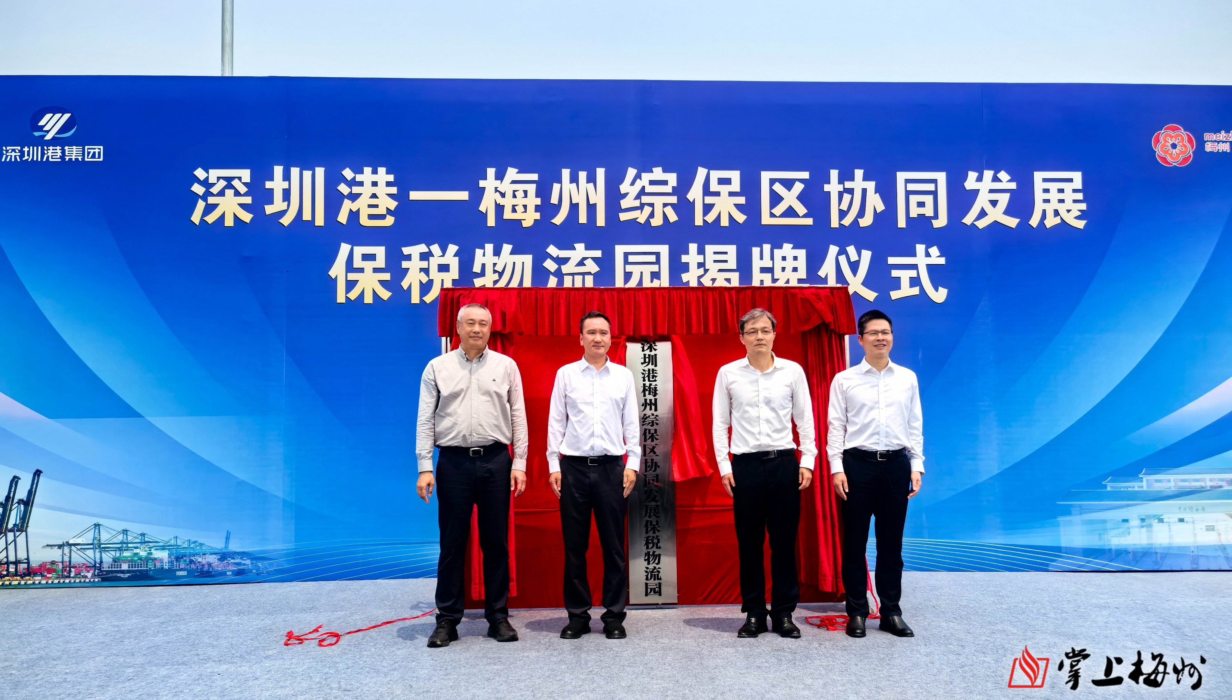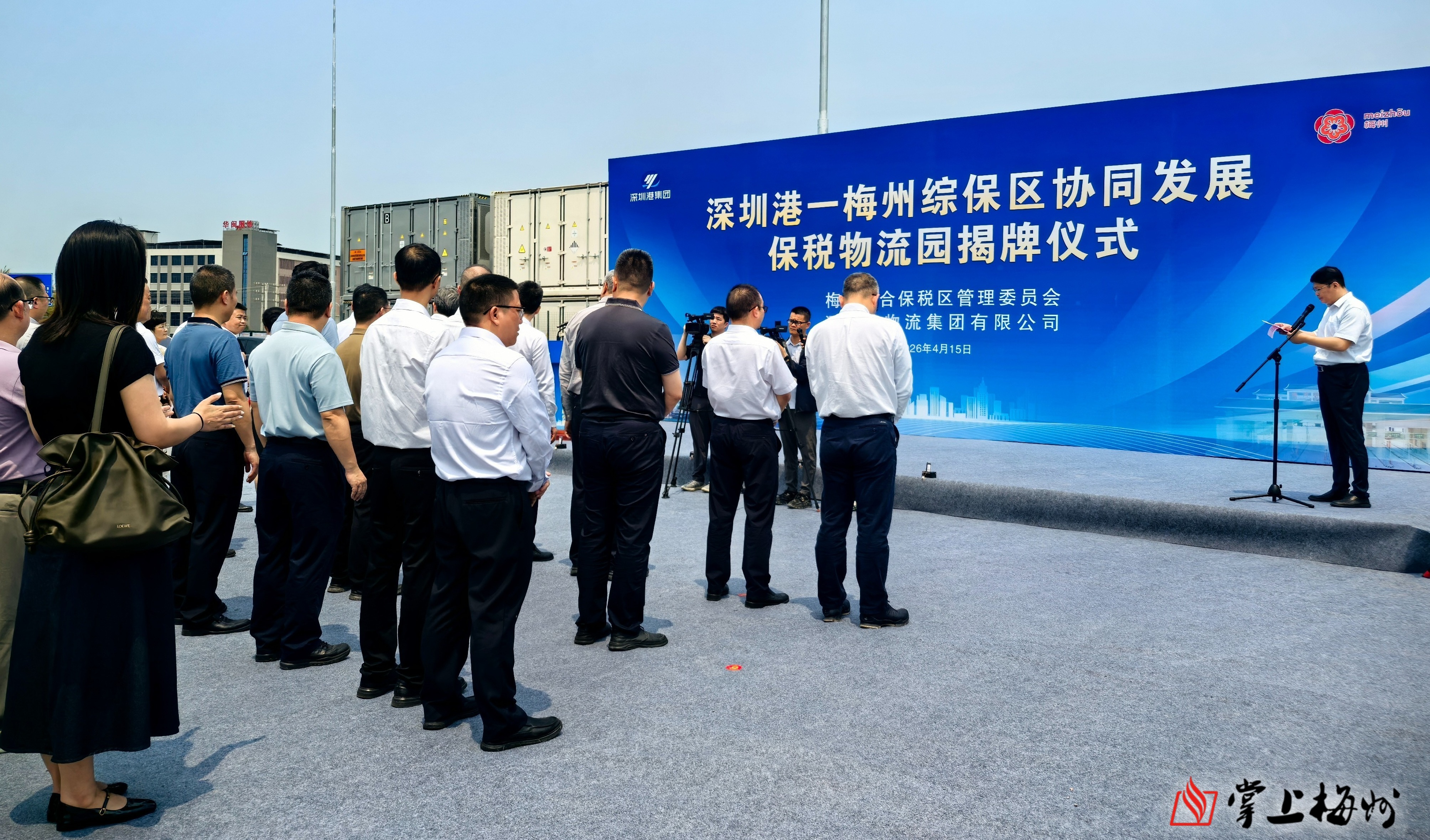 掌上梅州讯 4月15日,深圳港—梅州综保区协同发展保税物流园揭牌仪式在梅州综保区举行。市委常委、副市长蒋鲲参加。