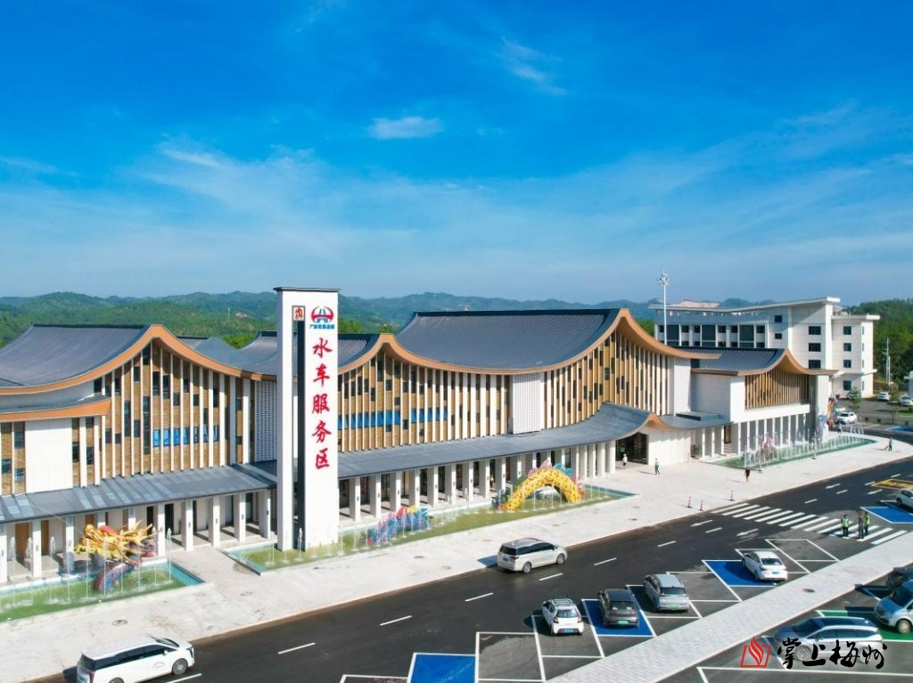 水车服务区以“一衣带水·半山潮客”为设计主题,通过东西区分区布局,融合客家与潮汕文化元素,打造集交通服务与文化展示于一体的综合服务空间。“龙腾四海”“乾坤运转”两项公共艺术装置分别以潮汕嵌瓷工艺和客家农耕文化为载体,进一步强化服务区文化表达。