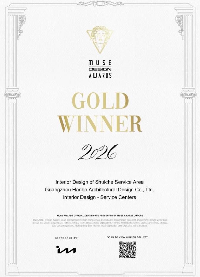 掌上梅州讯 近日,全球性设计大奖缪斯设计奖(MUSE Design Awards)公布2026年度获奖名单。汕梅高速改扩建项目水车服务区继2025年10月获评“铂金奖”后,再获3项金奖。