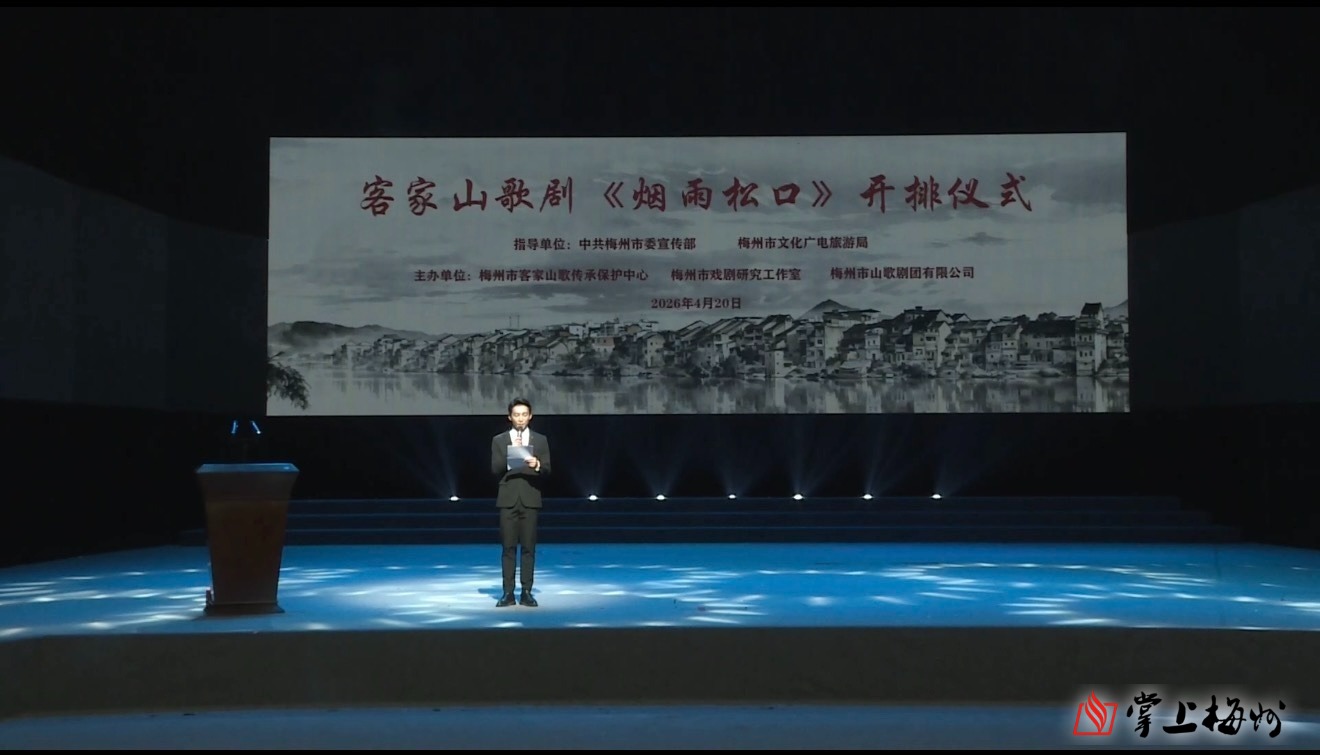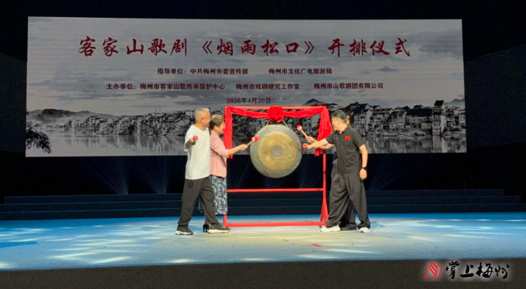 掌上梅州讯 4月20日上午,客家山歌剧《烟雨松口》开排仪式在梅州市山歌剧场举行。该剧是一部以广东梅州松口古镇为时空载体,以客家民系百年沉浮为精神底色的史诗性山歌剧作品,故事聚焦松口古镇上梁、李两家几代普通人,讲述他们在家国兴衰、时代更迭的历史长河中的命运轨迹。市委宣传部、市文化广电旅游局有关负责同志,剧目主创团队、主演、媒体代表等齐聚现场,共同见证这一重要时刻。