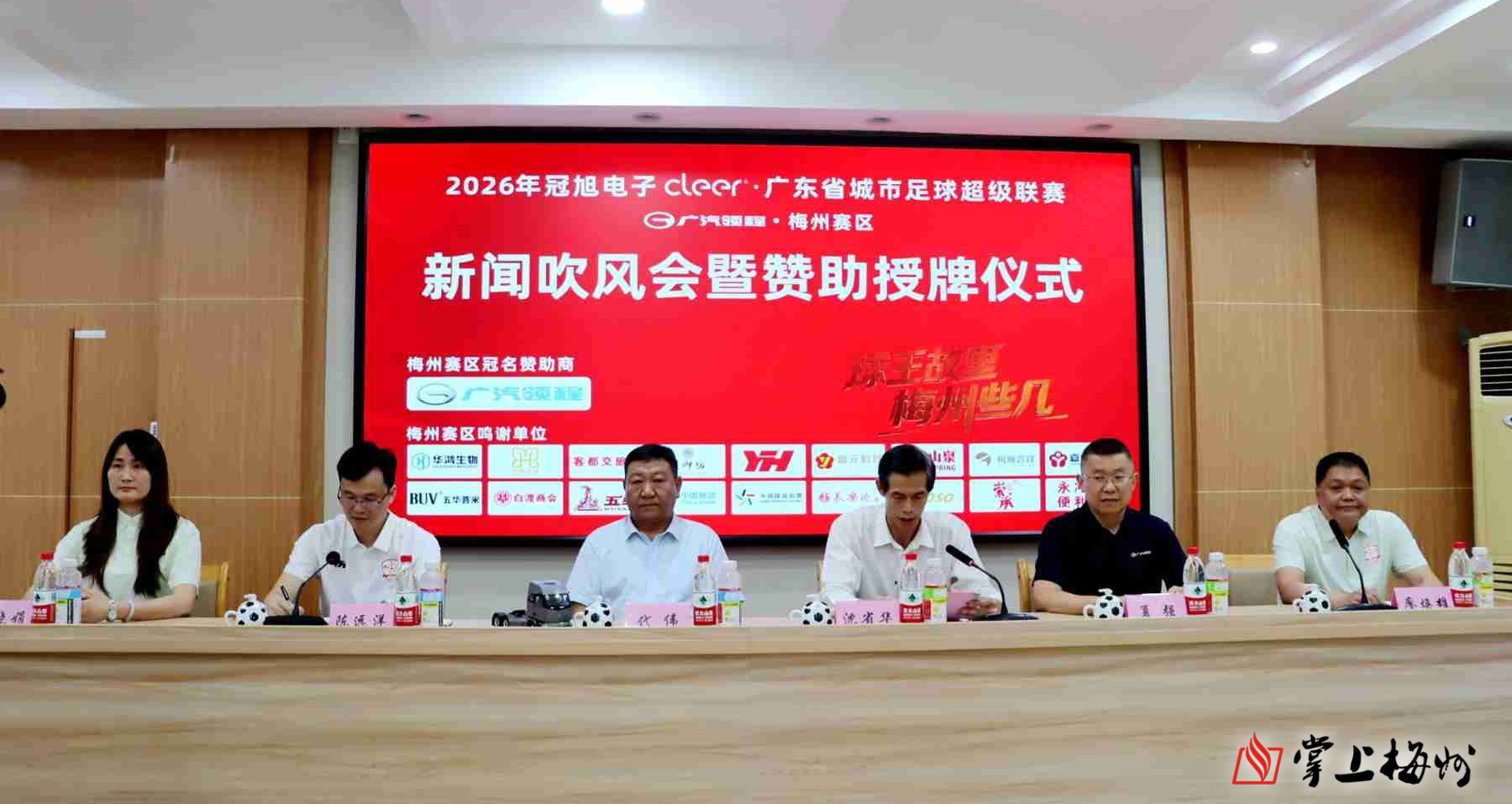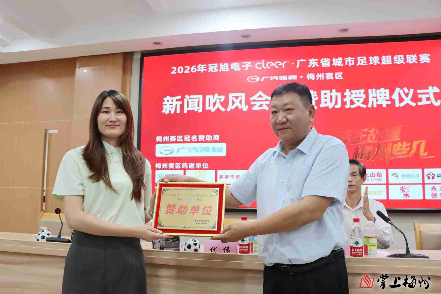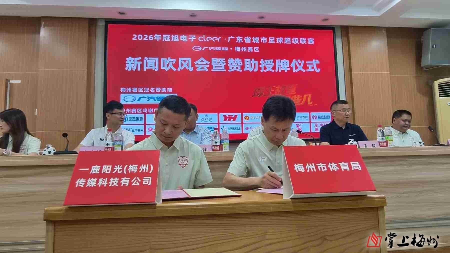 掌上梅州讯 4月21日,2026年冠旭电子cleer・广东省城市足球超级联赛(简称“粤超”)广汽领程梅州赛区新闻吹风会暨赞助授牌仪式举行。